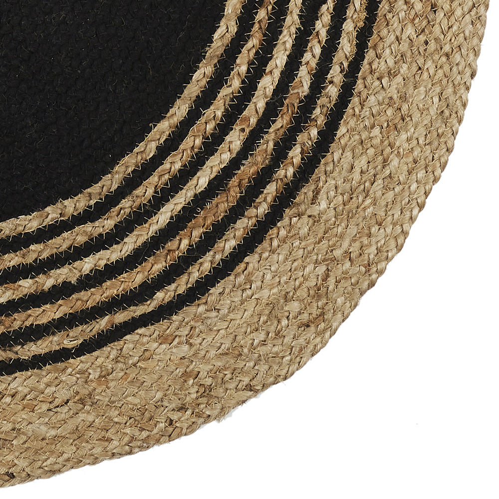 Apaļš džutas paklājs ar melnu ģeometrisku rakstu Ø 90 cm