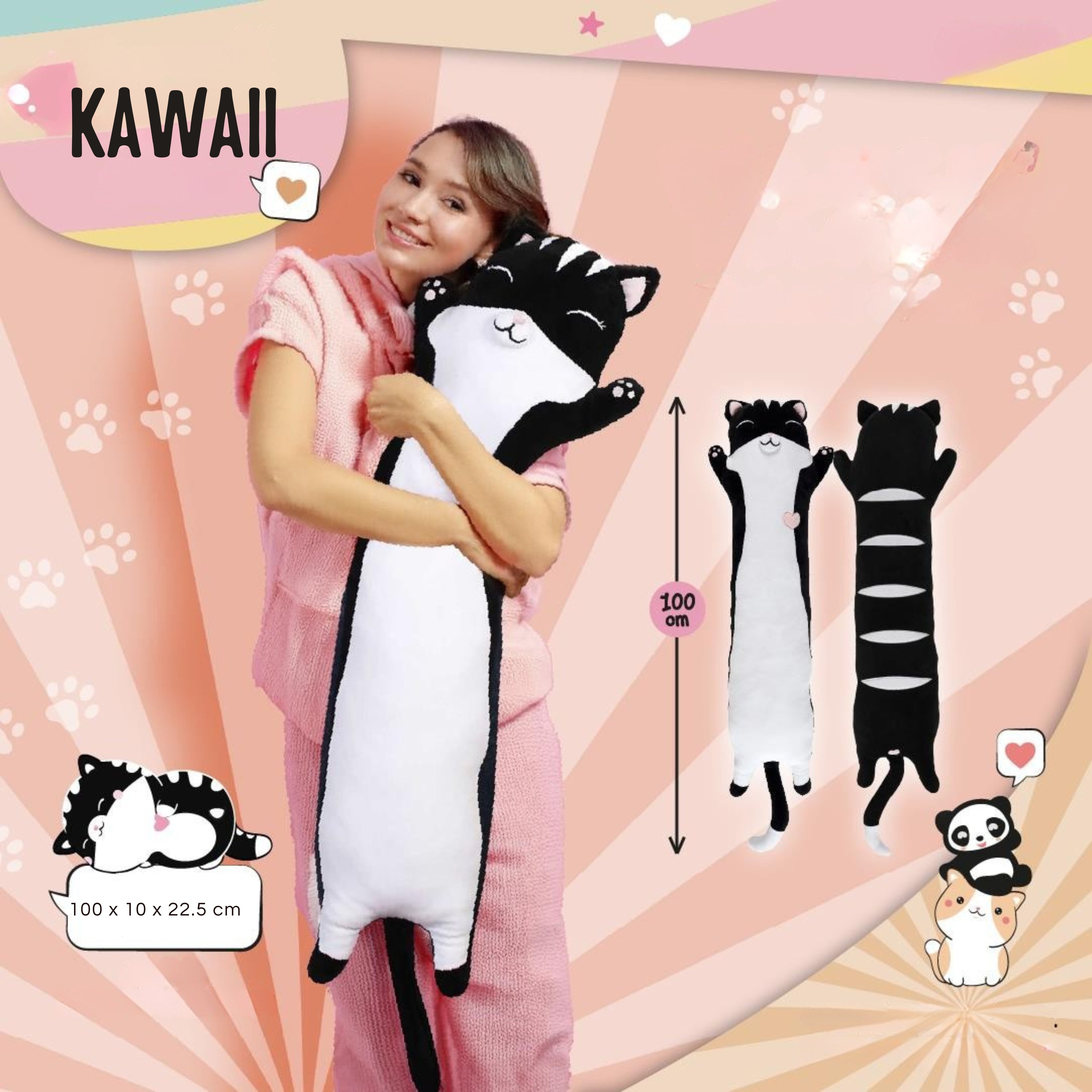 Īpaši mīksta un kawaii stila garā kaķa plīša rotaļlieta, kas ideāli piemērota apskāvieniem, atpūtai un interjera akcentam. Šis 100 cm garais melnbaltais kaķis ir veidots kā ķermeņa spilvens (body pillow), nodrošinot komfortu gan bērniem, gan pieaugušajiem. Maigs audums, mīlīgs dizains un pagarinātā forma padara to par perfektu sabiedroto mierīgam vakaram, snaudai vai dāvanai.