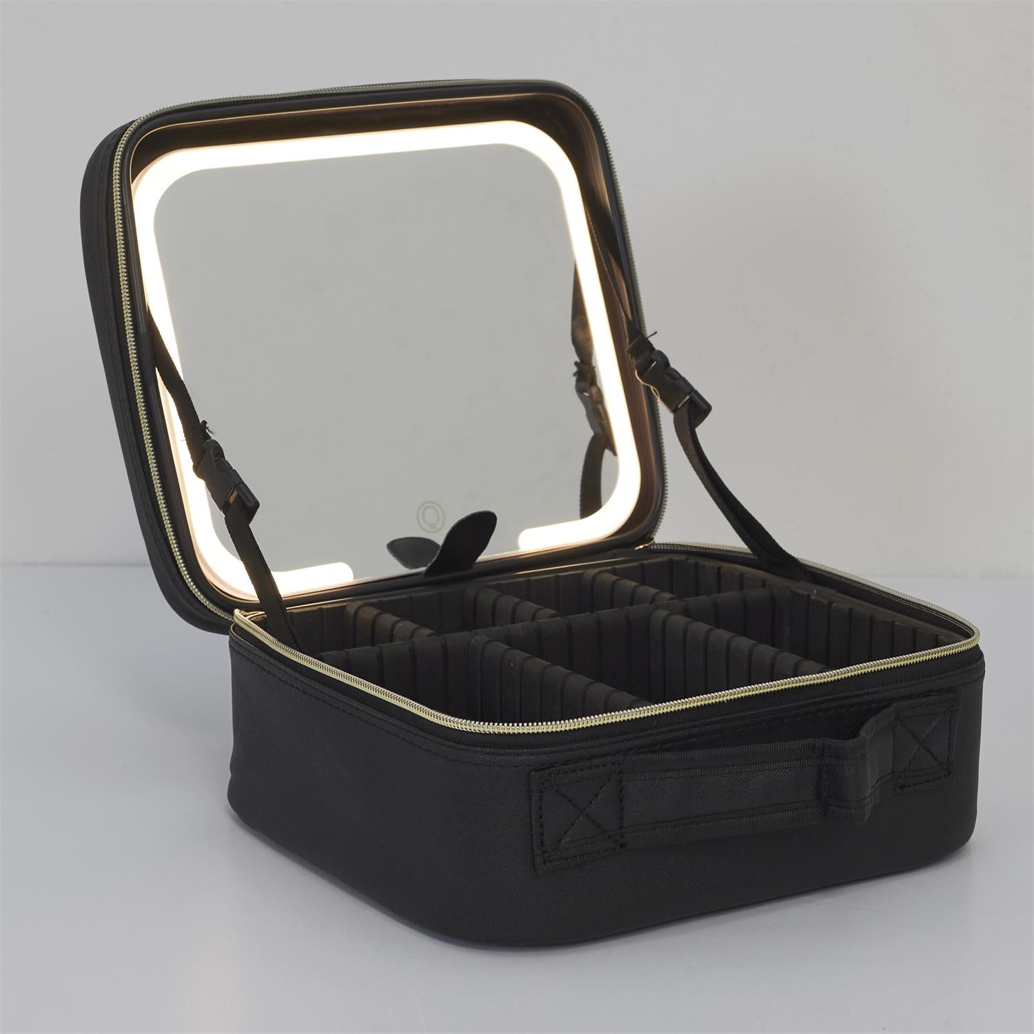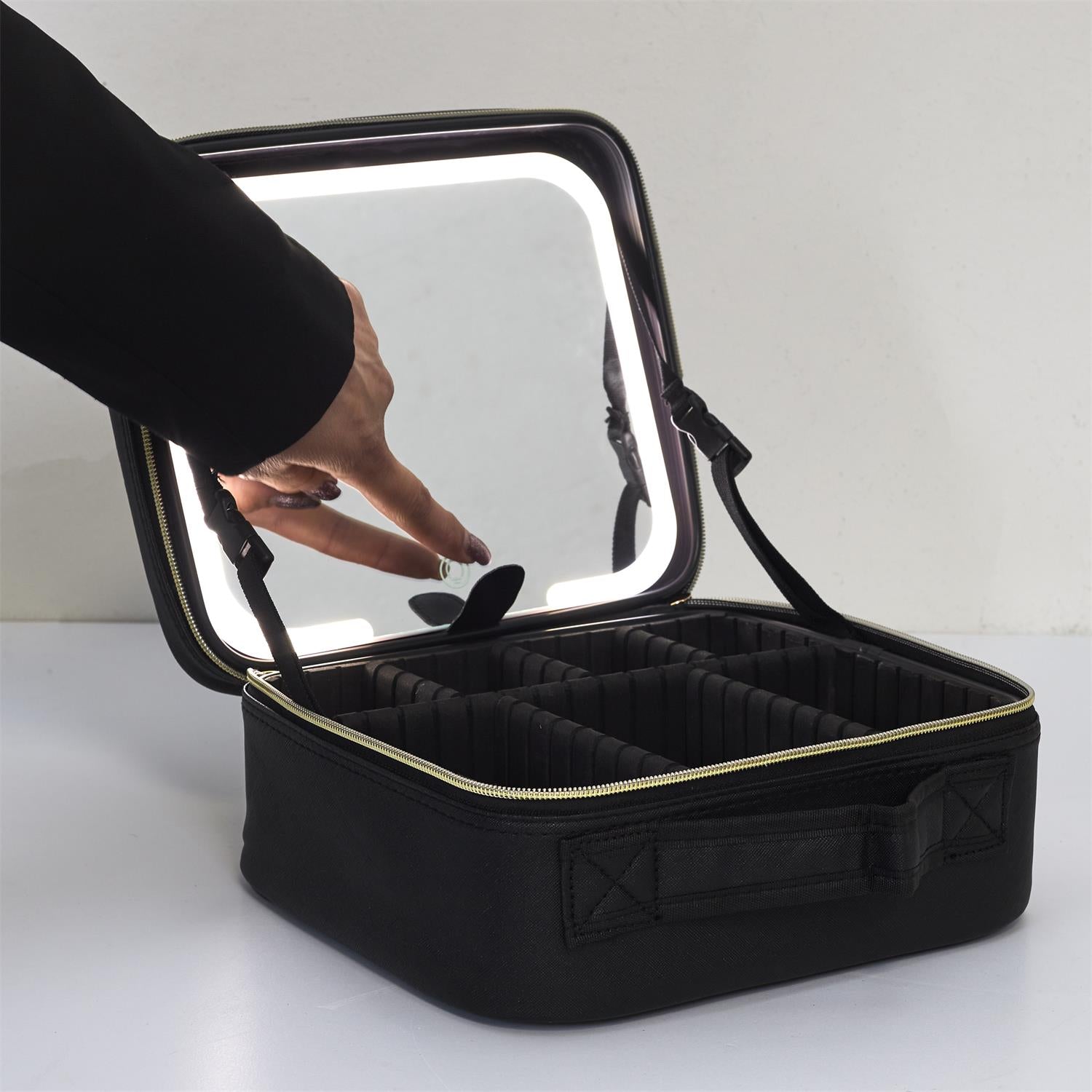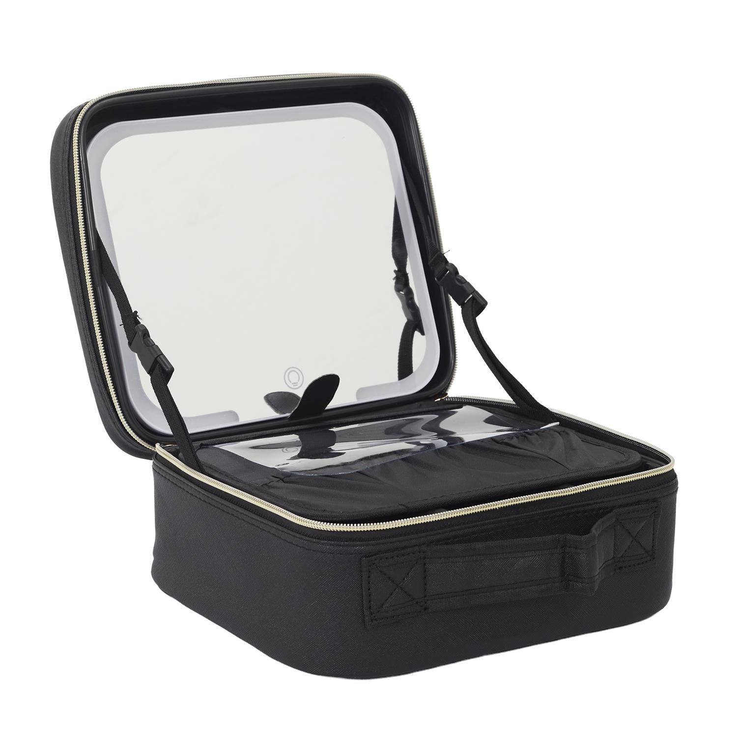 Eleganta un praktiska kosmētikas soma ar iebūvētu LED spoguli, kas nodrošina perfektu apgaismojumu jebkurā situācijā. Trīs regulējami gaismas režīmi – siltais, neitrālais un aukstais – ļauj pielāgot apgaismojumu grima uzklāšanai, ādas kopšanai vai ceļojumiem.