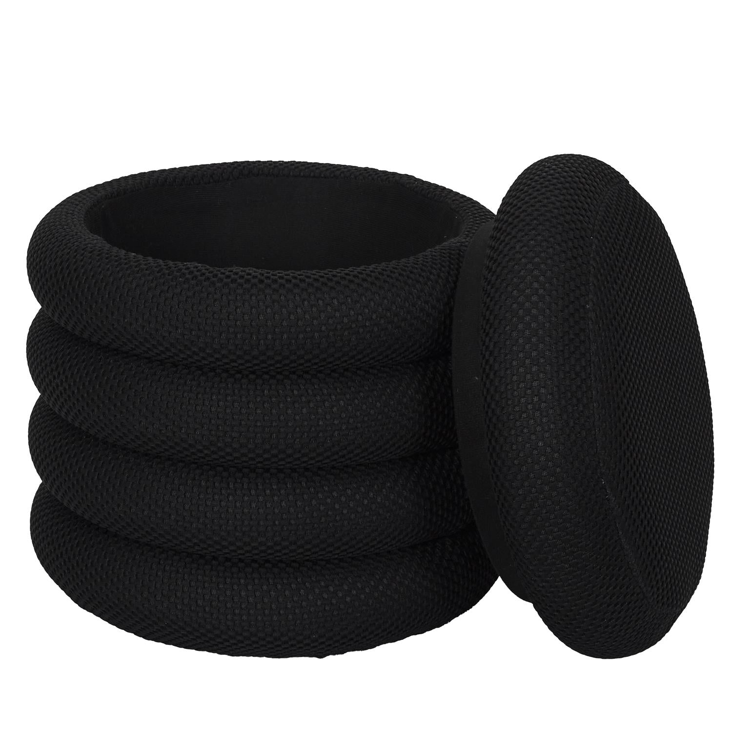 Šis melnais dizaina pufs ar vāku ir elegants un praktisks akcents mūsdienīgam interjeram. Skulpturālā, slāņveida forma piešķir telpai raksturu, savukārt integrētā uzglabāšanas vieta palīdz uzturēt kārtību – stilīgi un nemanāmi. Ideāli piemērots viesistabai, guļamistabai, priekšnamam vai garderobei.