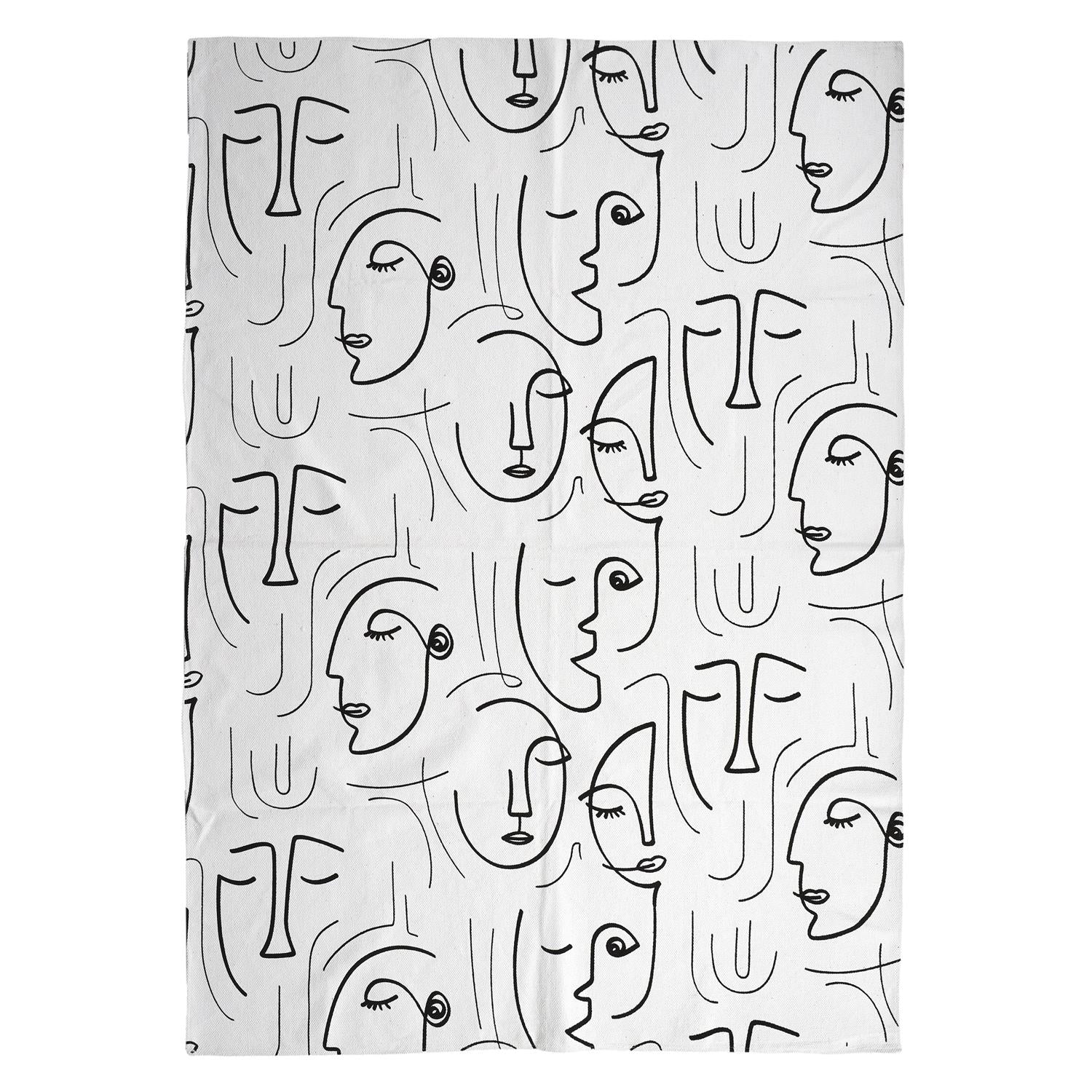 Ienes savā interjerā māksliniecisku akcentu ar šo stilīgo paklāju ar abstraktu seju zīmējumu. Melnbaltais dizains piešķir telpai modernu un skandināvisku noskaņu, lieliski saderot gan ar minimālistisku, gan boho vai lofta stila interjeru.