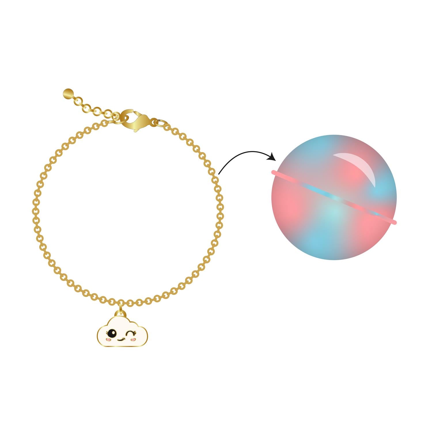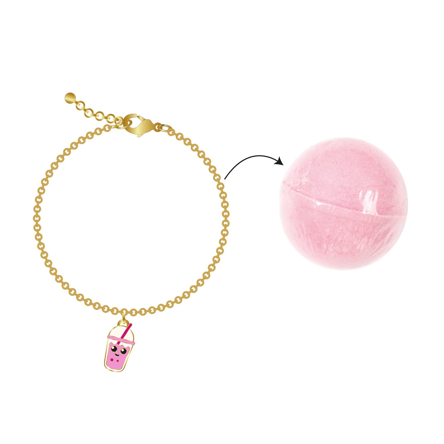 Pārvērt vannas laiku par maģisku piedzīvojumu! Šī aromātiskā vannas bumba ne tikai patīkami puto un smaržo, bet tās iekšpusē slēpjas skaista pārsteiguma rotaslieta – aproce ar mīļu kuloniņu.