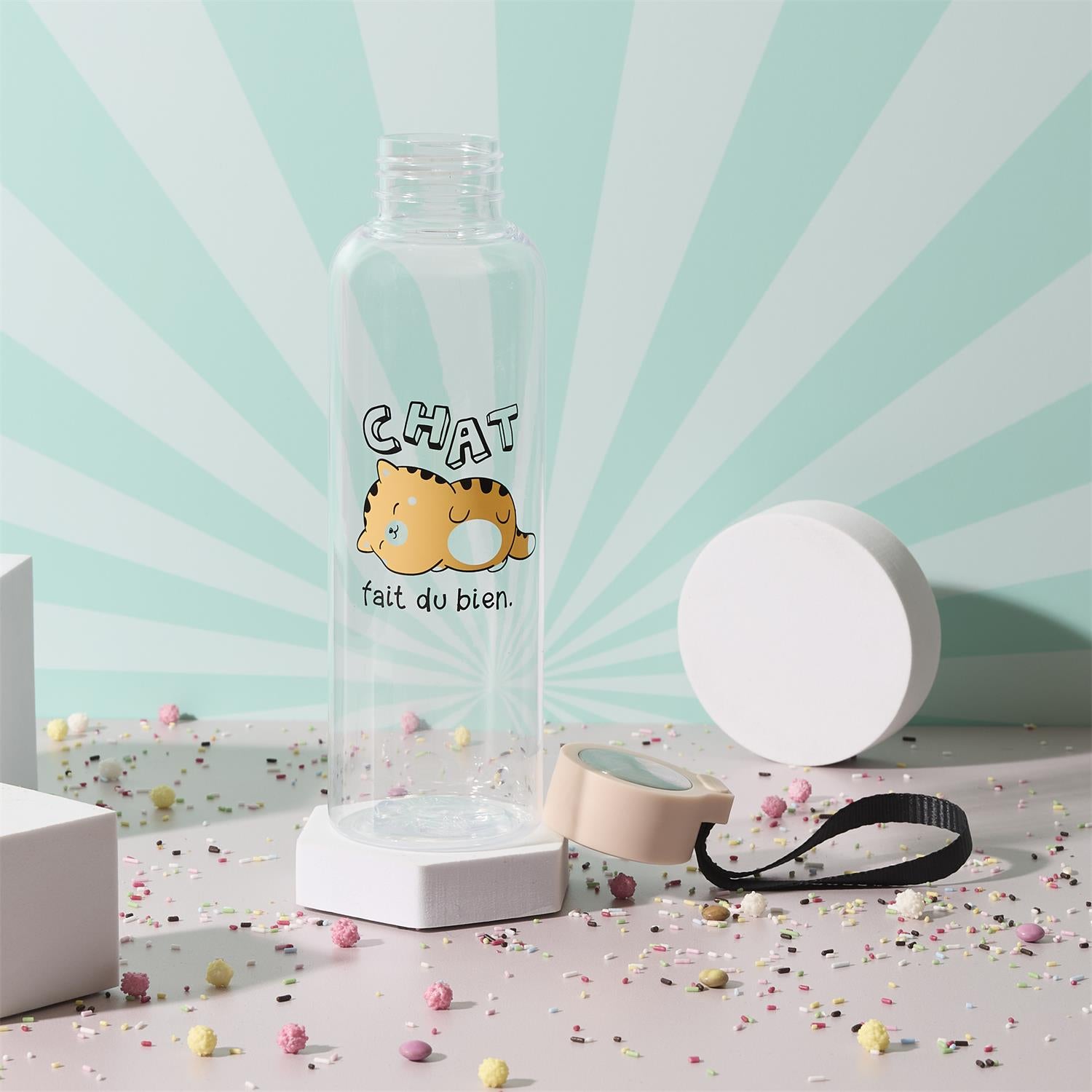 Šī burvīgā kawaii stila ūdens pudele ar mīļām ilustrācijām (panda, kaķītis u.c.) ir ideāls sabiedrotais ikdienā – skolā, darbā, sportā vai ceļojumos. Vieglā un kompaktā forma padara to ērti pārnēsājamu, bet siksniņa ļauj pudeli vienmēr turēt pa rokai.
