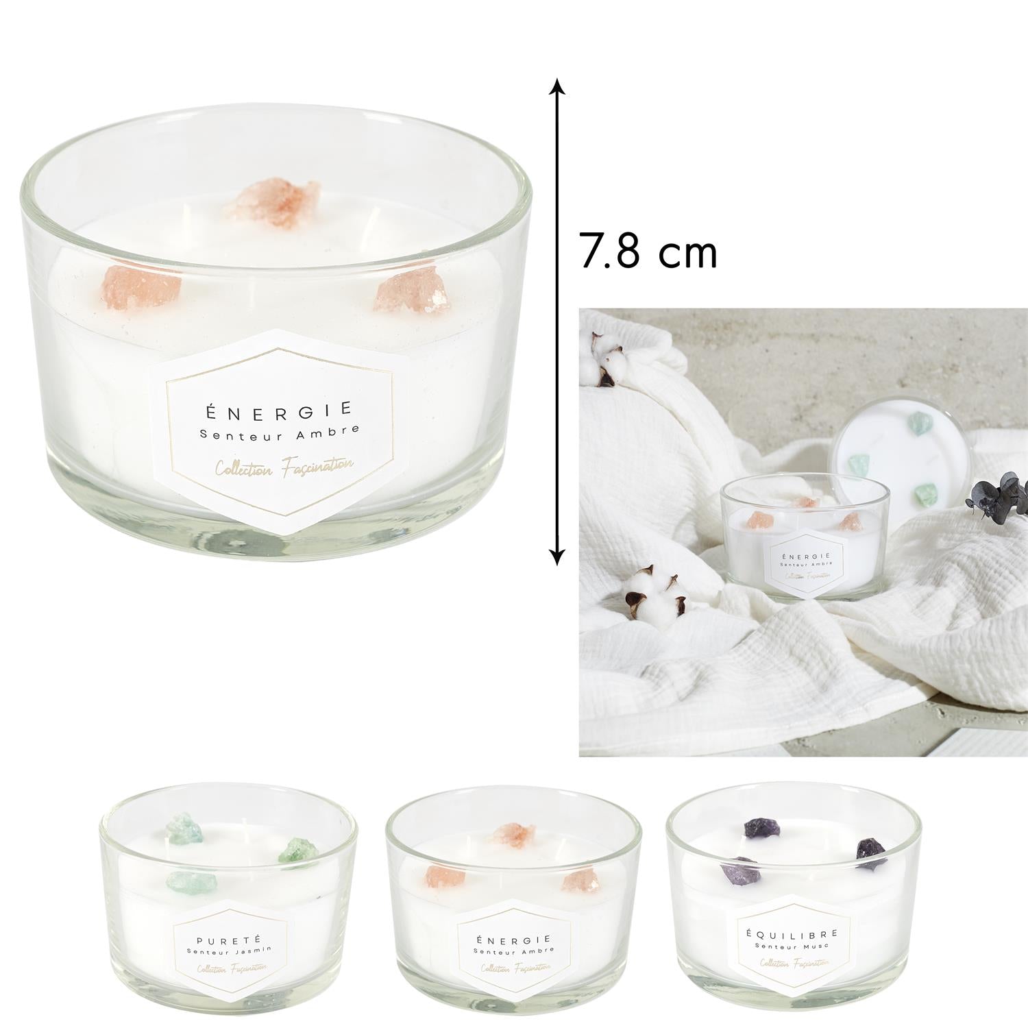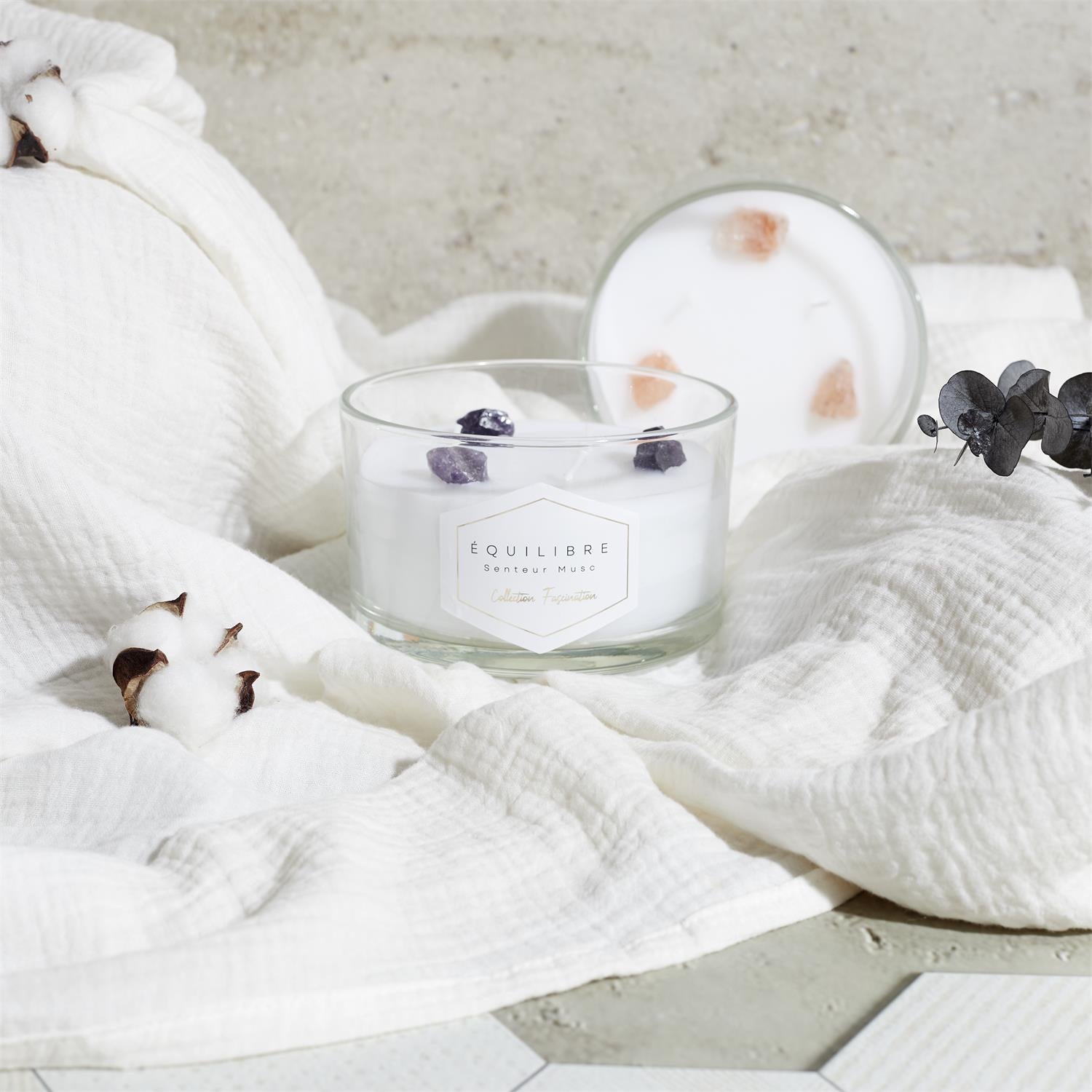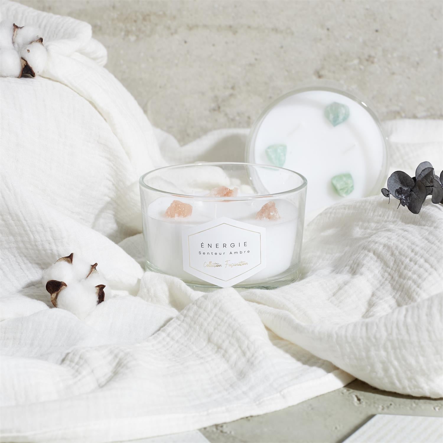 Elegantas aromātiskās sveces ar dabīgiem kristāliem, kas piešķir telpai harmoniju un noskaņu.