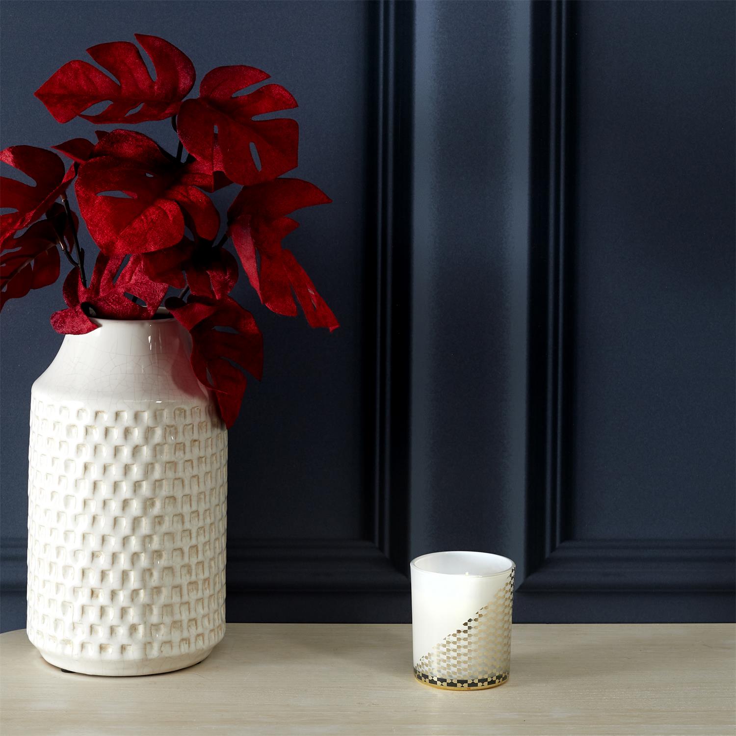 Eleganta dizaina aromātiskā svece melnā vai gaišā traukā ar zelta rakstu apvieno izsmalcinātu interjeru un patīkamu pārsteigumu. Degot svecei, tās iekšpusē atklājas smalka zelta toņa aproce, padarot šo produktu par īpašu dāvanu vai nelielu greznību sev.