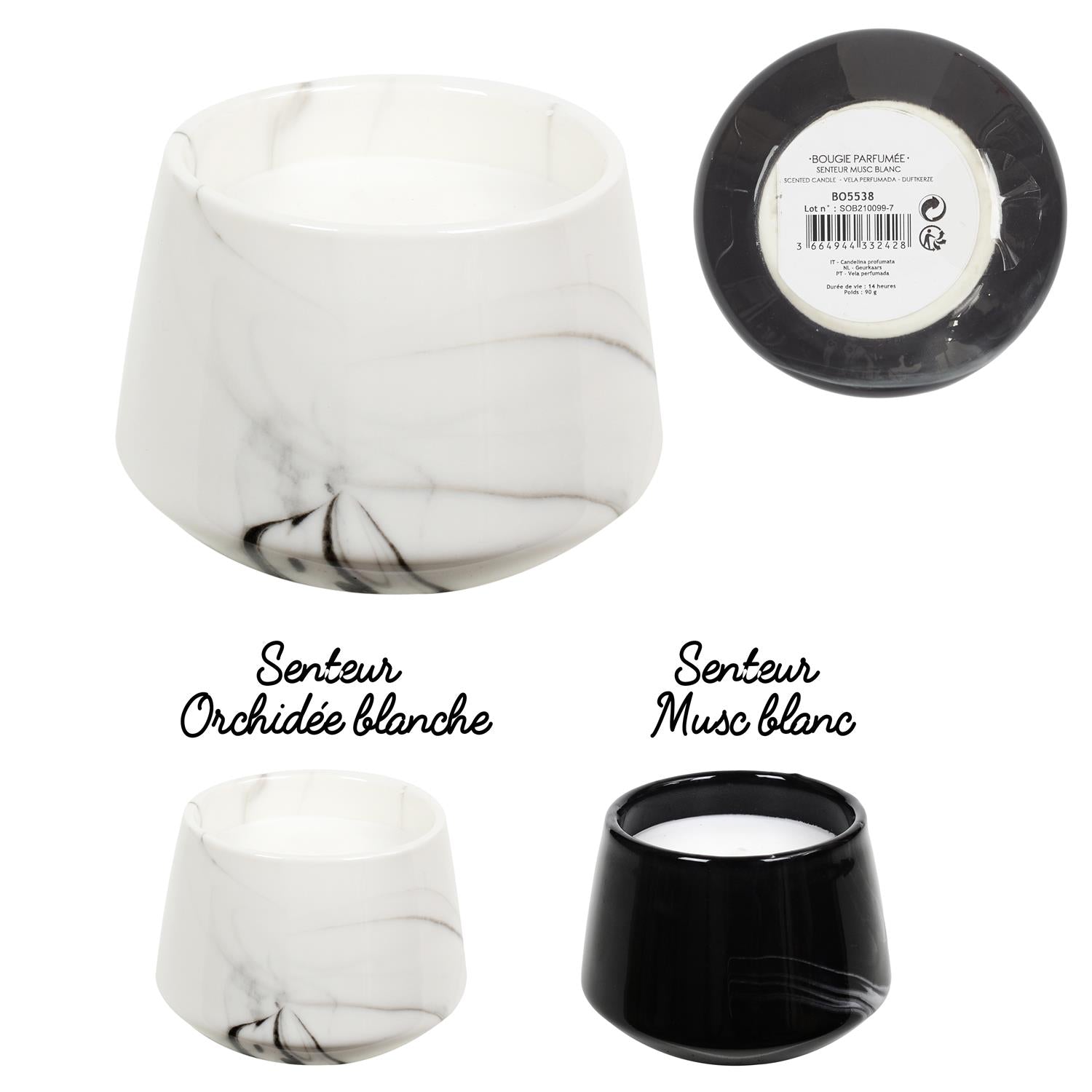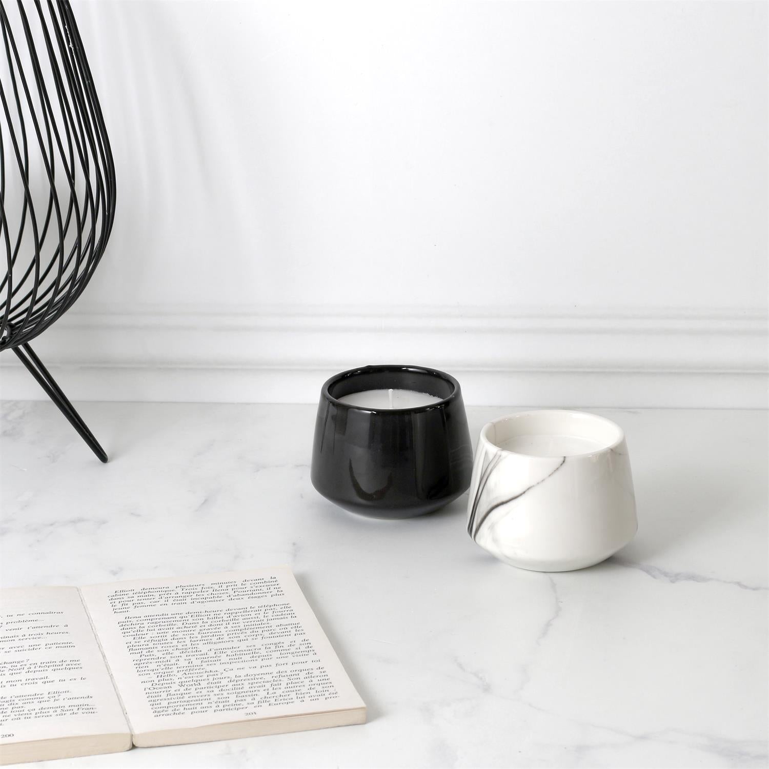 • Aromātiskā svece dekoratīvā marmora dizaina traukā