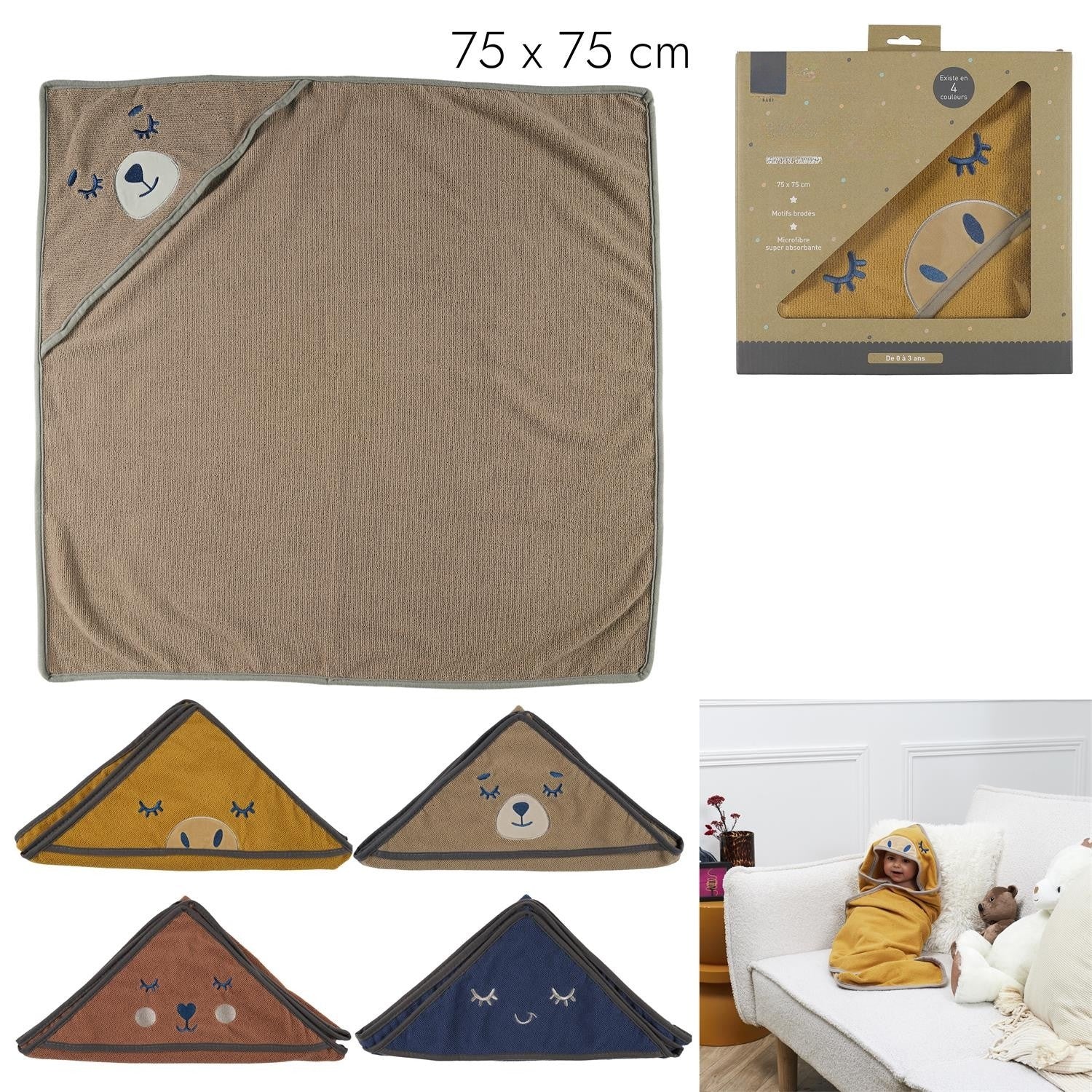 Bērnu kapuces dvielis ar izšuvumu – 75 × 75 cm