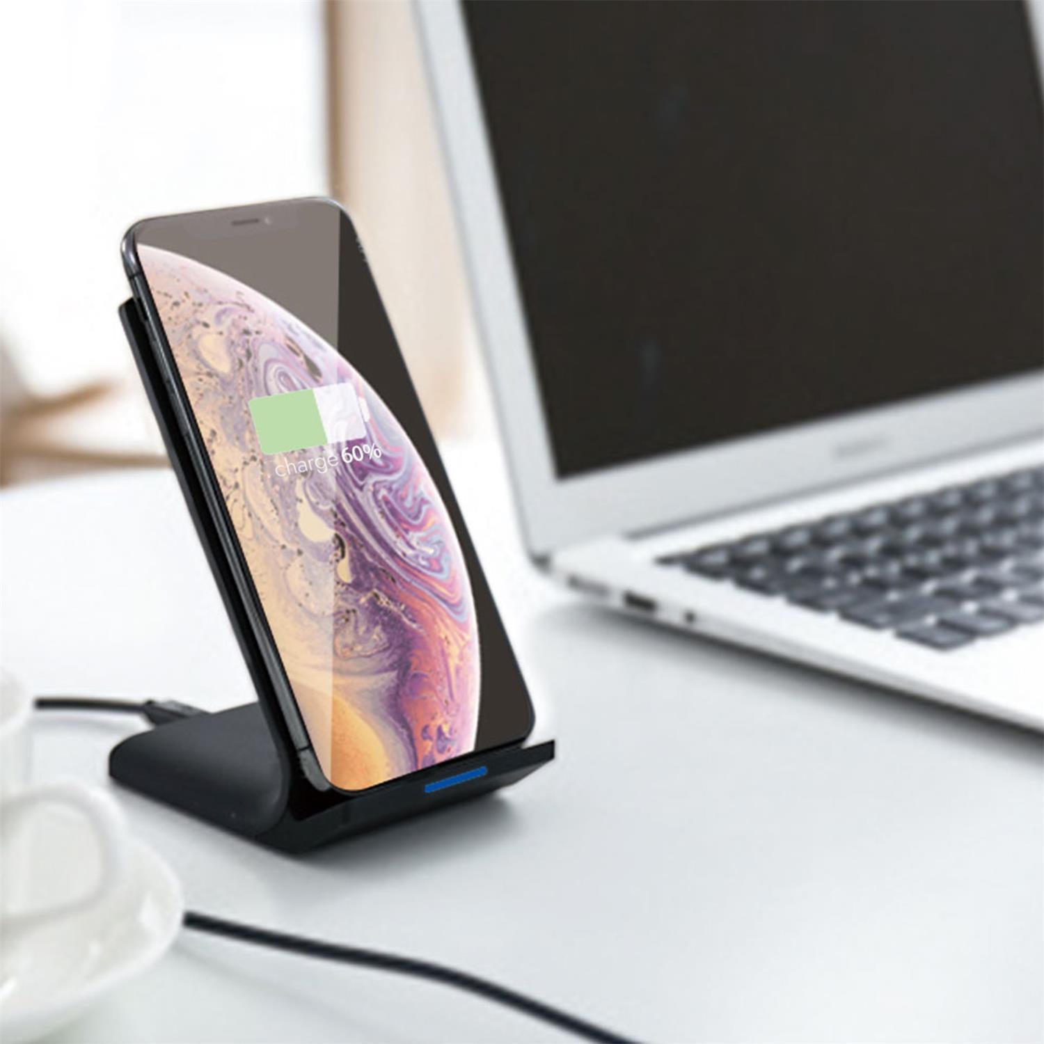 Ērts un elegantas formas bezvadu uzlādes statīvs, kas ļauj uzlādēt telefonu vienkārši to novietojot. Piemērots gan mājām, gan birojam, gan ceļojumiem – šis statīvs nodrošina stabilu, ātru un ērtu uzlādi jebkurā brīdī.