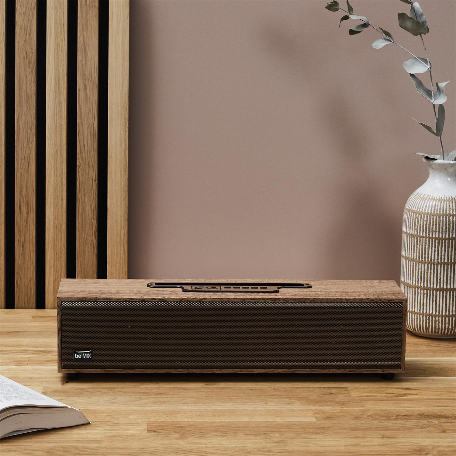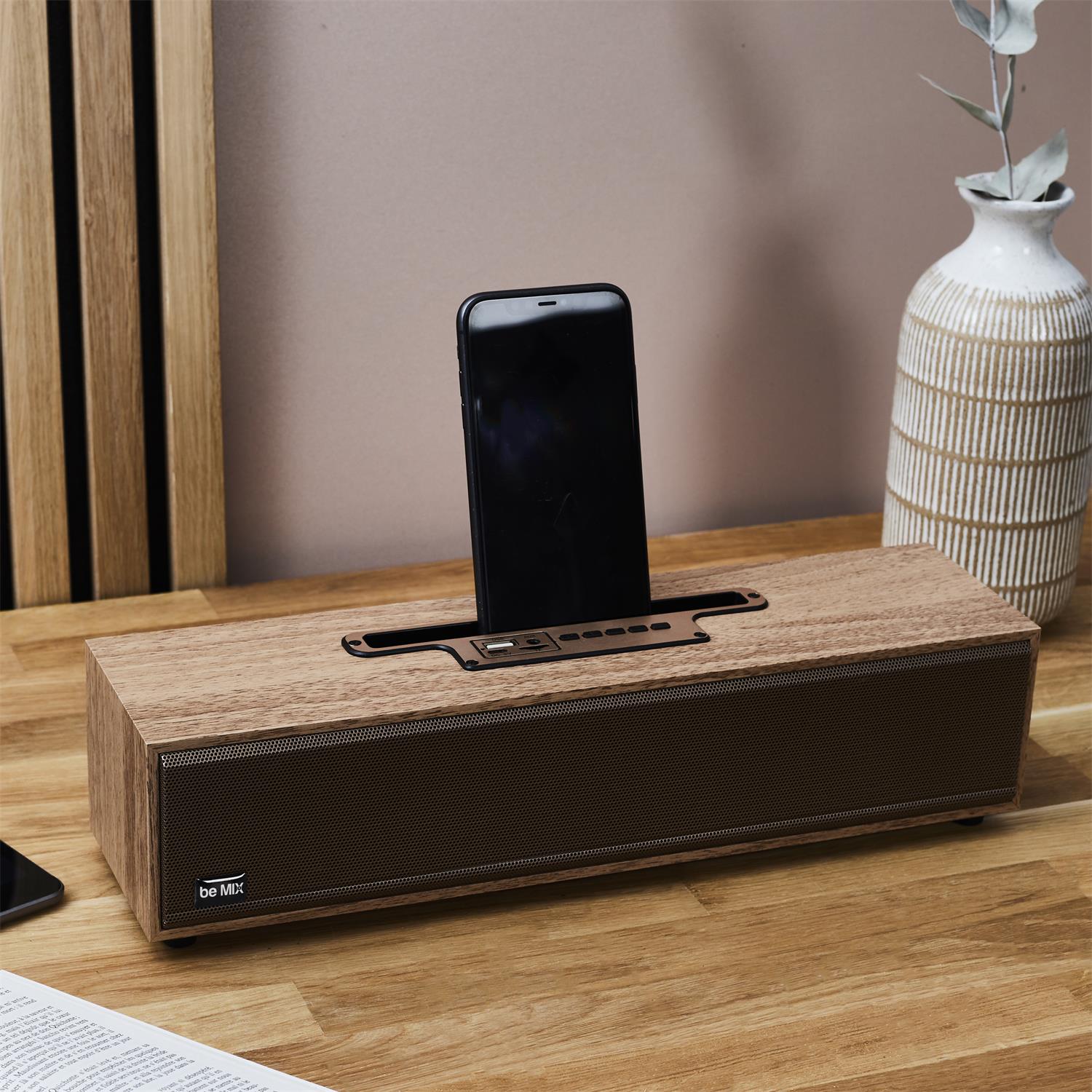Elegants un moderns bezvadu skaļrunis ar koka efekta apdari, kas apvieno labu skaņu un estētisku dizainu. Tas ne tikai atskaņo mūziku, bet arī izskatās kā interjera dekors, lieliski papildinot dzīvojamo telpu, guļamistabu vai biroju.