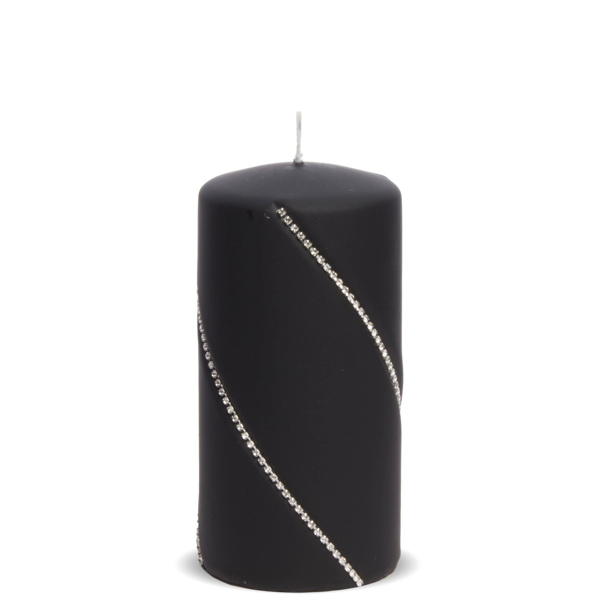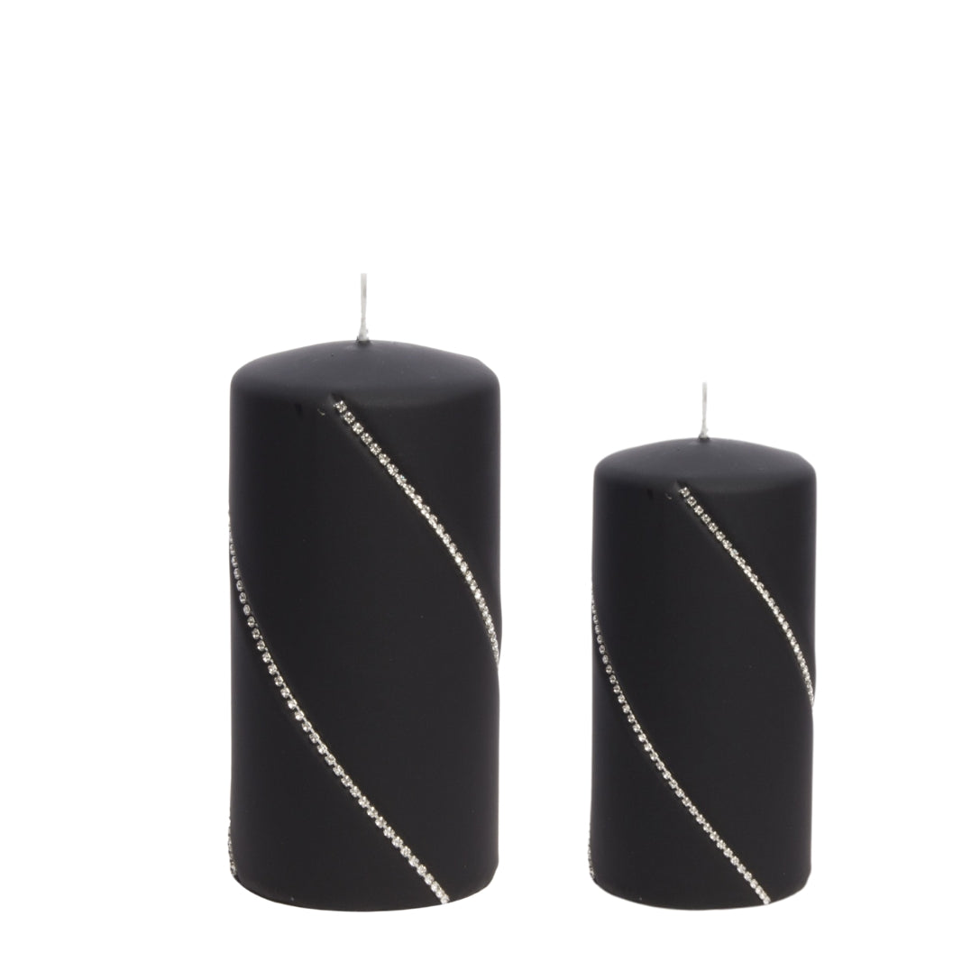 Cilindra svece– melna ar kristāliņiem, Pieejams divos izmēros