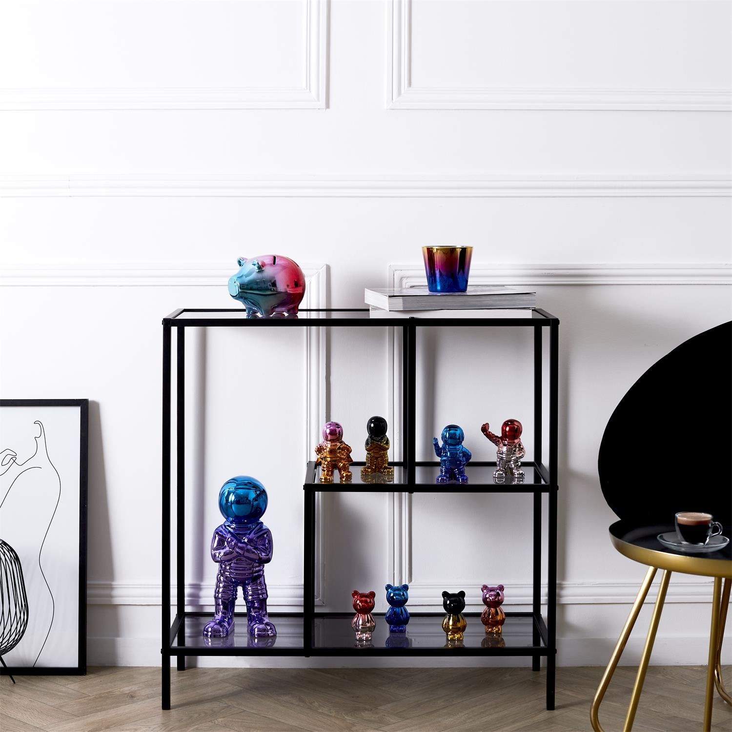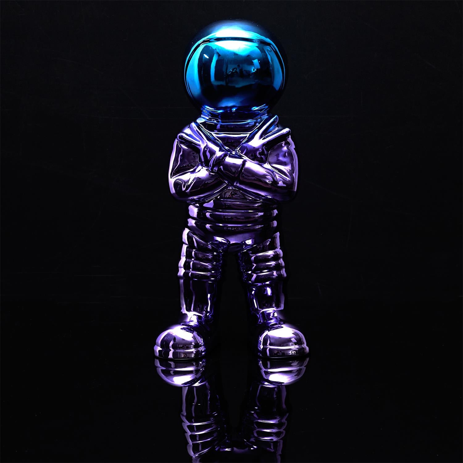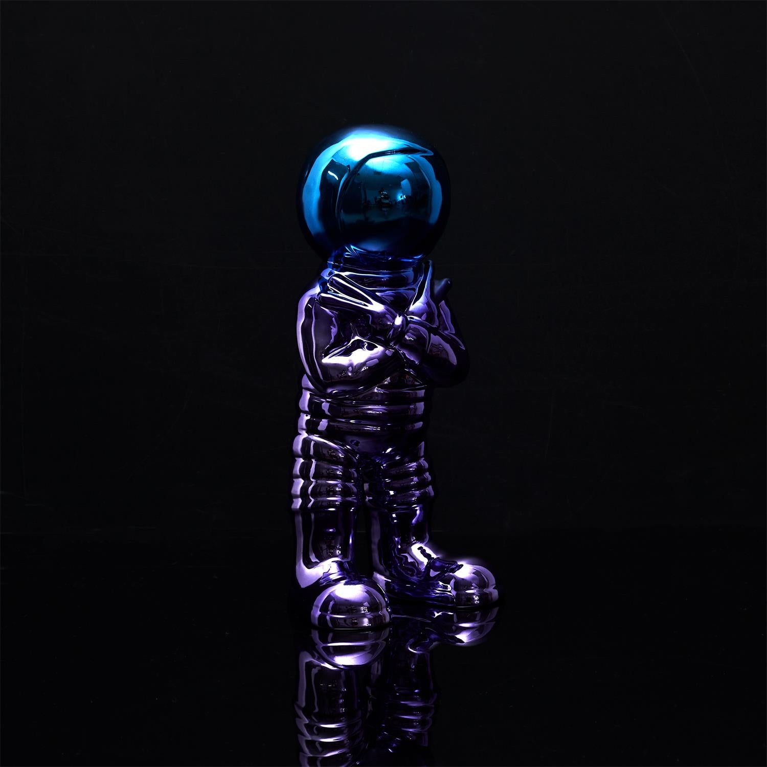 Iespaidīga un mūsdienīga keramikas skulptūra astronauta formā, kas uzreiz piesaista skatienu ar savu spīdīgo metālisko violeti–zilo apdari. Glazētā virsma atstaro gaismu un rada futuristisku, greznu efektu, kas lieliski papildina modernu, dizaina vai pop-art iedvesmotu interjeru.