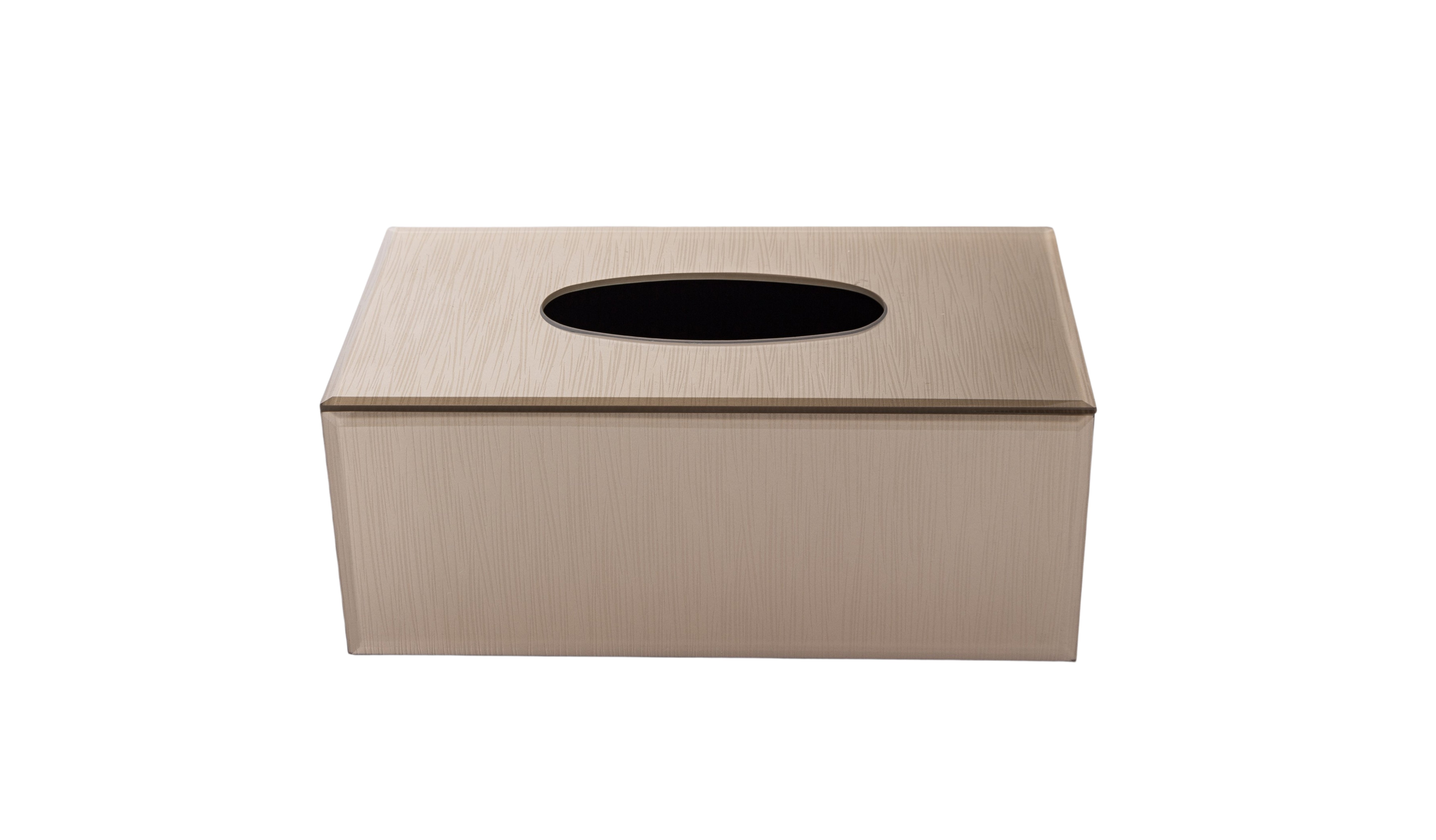 Eleganta un funkcionāla dekoratīvā salvešu kaste, kas lieliski iederas modernā, mierīgā un sakoptā interjerā. Kaste veidota no caurspīdīga, viegli tonēta materiāla ar smalku vertikālu tekstūru, kas piešķir tai dabisku un izsmalcinātu izskatu. Ovālais atvērums augšpusē nodrošina ērtu salvešu izņemšanu, savukārt noņemamā apakšējā daļa ļauj vienkārši nomainīt salvešu iepakojumu.