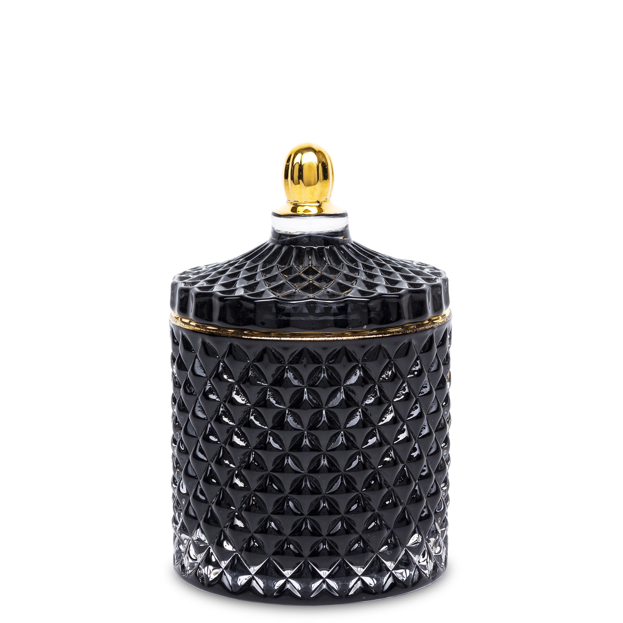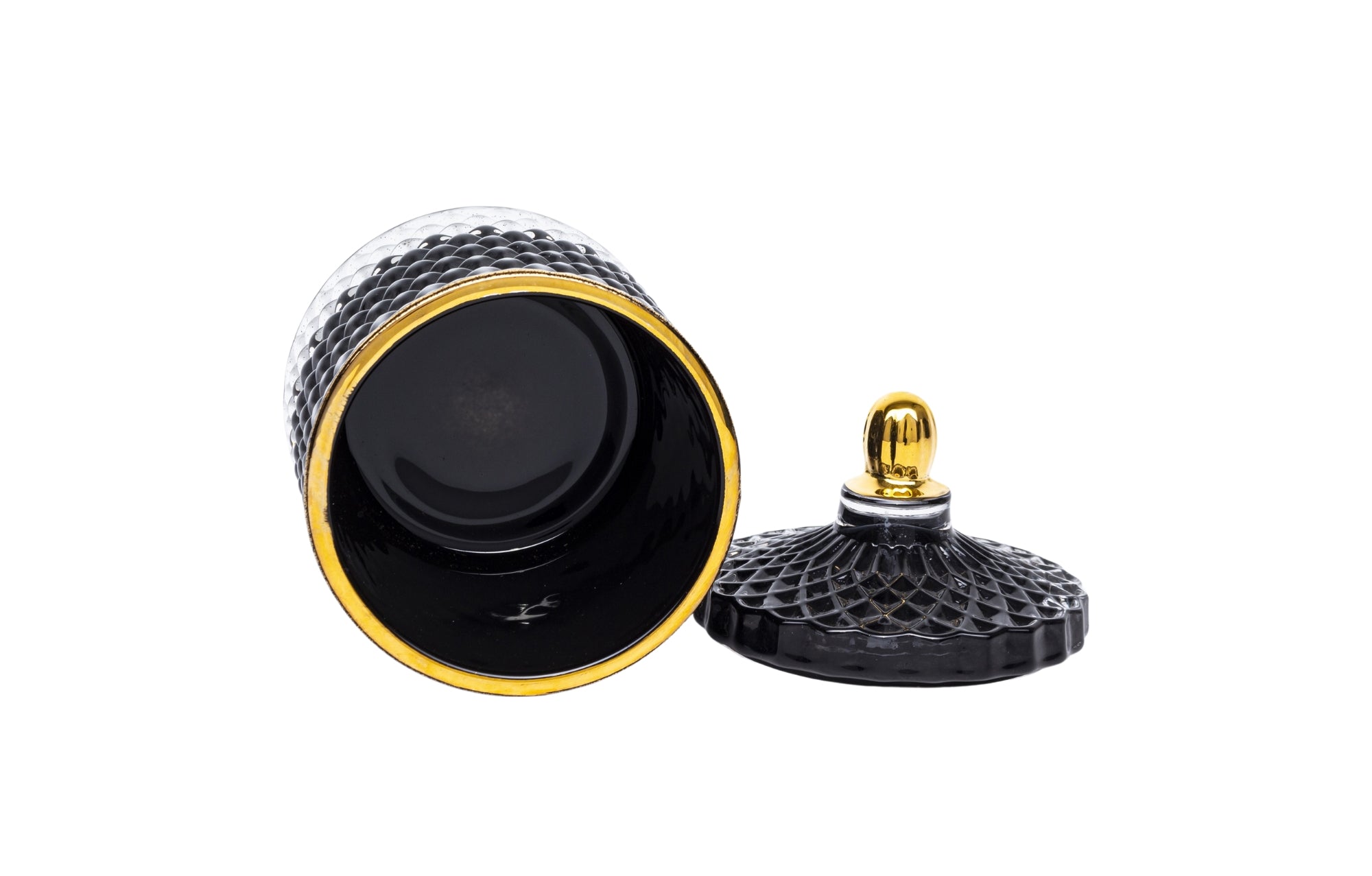 Dekoratīva stikla trauks ar vāku – melns ar zelta detaļām