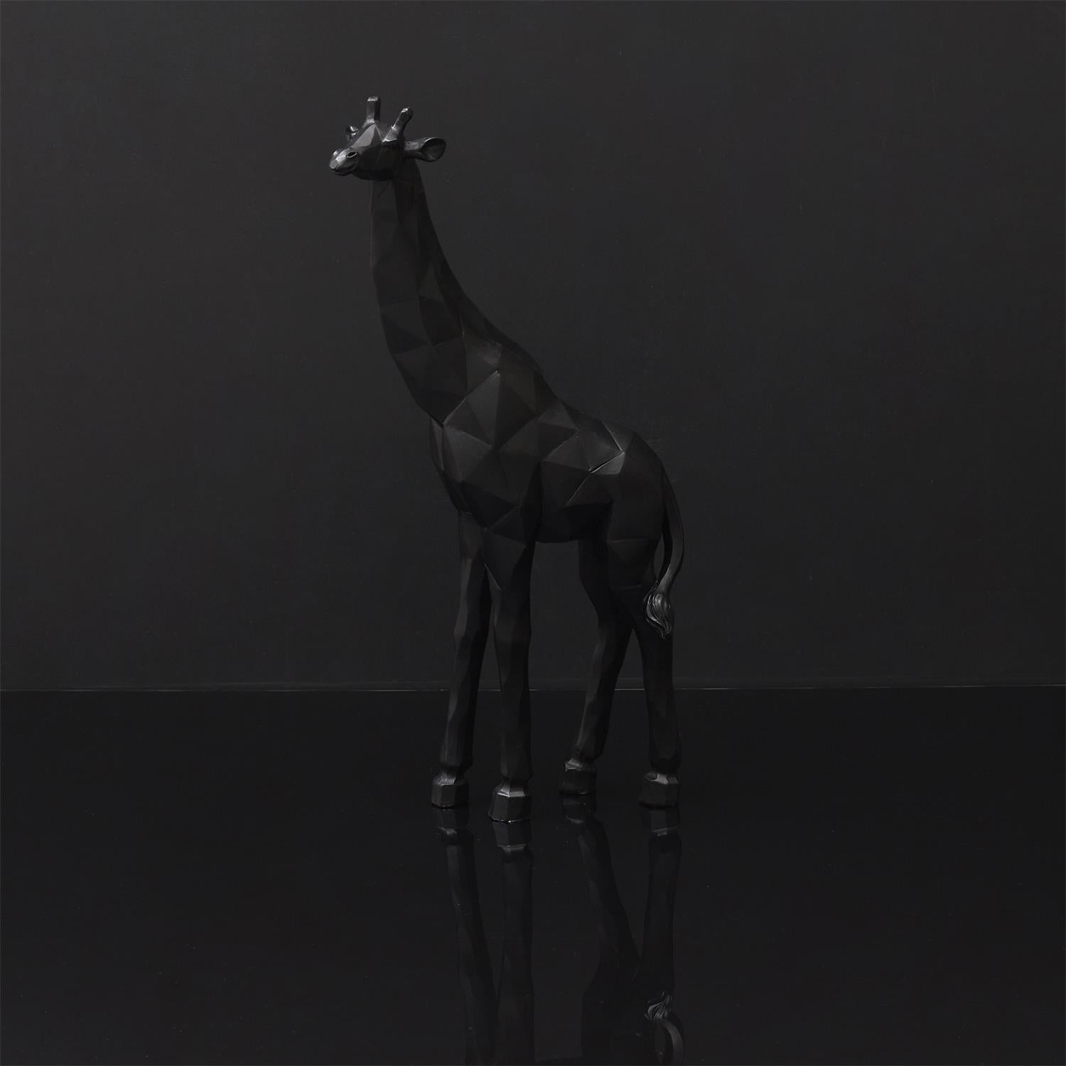 Stilīga žirafes figūra ģeometriskā dizainā, kas telpai piešķir modernu akcentu un vizuālu vieglumu. Matēti melnā krāsa izceļ skulpturālās, daudzšķautņu līnijas, radot ekskluzīvu un mūsdienīgu izskatu.