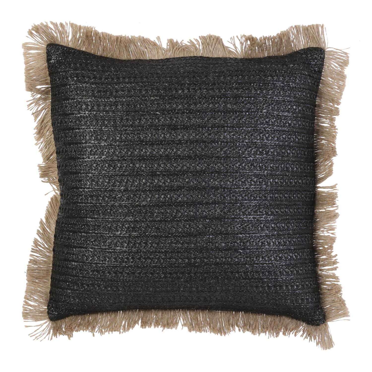 Šis dekoratīvais raffia spilvens ar dabīgām bārkstīm piešķir interjeram siltu, dabisku un moderni boho noskaņu. Melnā priekšpuse kontrastā ar gaišo aizmuguri rada stilīgu akcentu gan minimālisma, gan skandināvu vai boho stilā iekārtotās telpās.