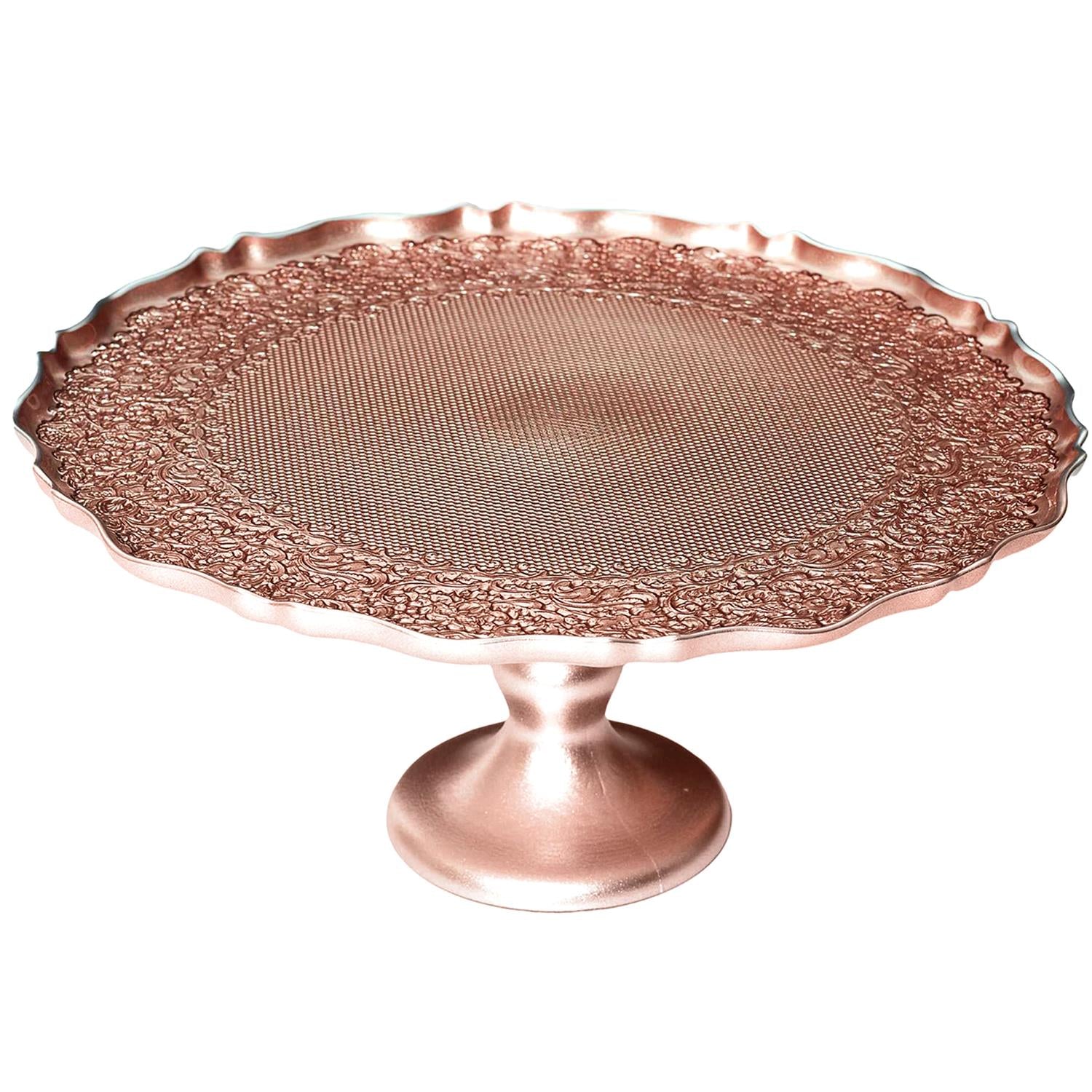 Ideāli piemērots kūkām, desertiem, augļiem, cepumiem vai uzkodām. Izgatavots no kvalitatīva metāla ar dekoratīvu apdari, tas nodrošina stabilitāti un ilgmūžību. Ø32 cm diametrs ļauj ērti pasniegt arī lielākas kūkas un konditorejas izstrādājumus.