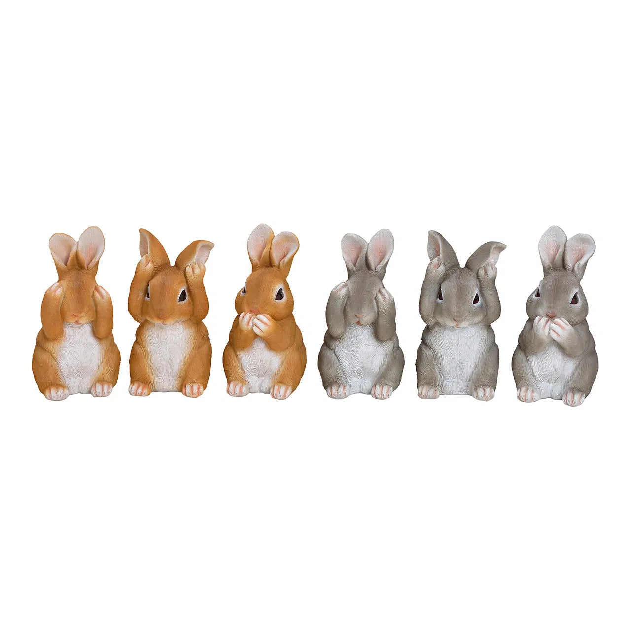 Mīlīga un simboliska Lieldienu zaķa figūriņa, kas attēlo klasisko “neredzu, nedzirdu, nerunāju” motīvu. Pieejami 6 varianti – katrā krāsā (brūnā un pelēkā) trīs dažādas pozas.