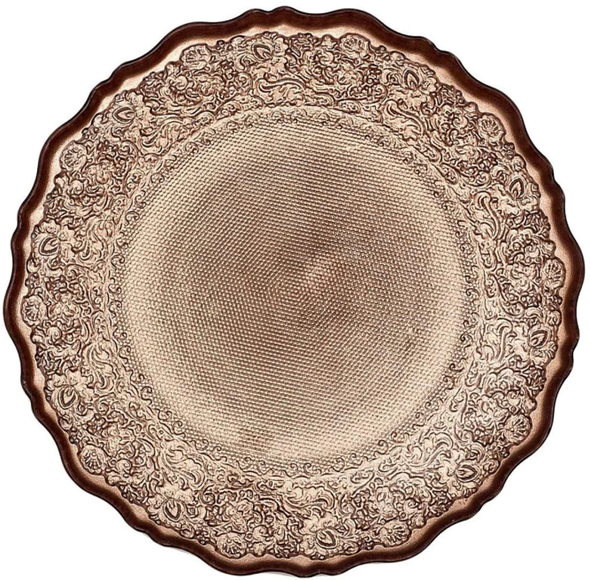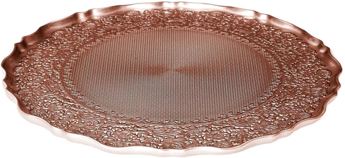 Šis greznais dekoratīvais servēšanas šķīvis rozā–zelta tonī piešķirs tavam galdam izsmalcinātu un svinīgu noskaņu. Reljefainais raksts un viļņotā maliņa rada elegantu vintage stila efektu, kas lieliski iederas gan svētku galda klājumā, gan kā interjera dekora elements.