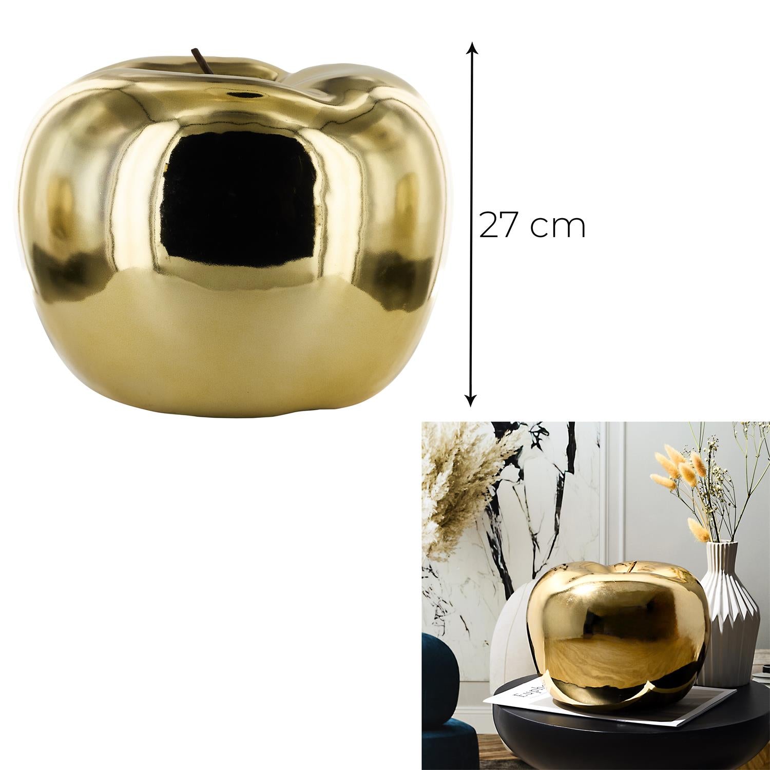 Izsmalcināta dekoratīvā figūra ābola formā ar spīdīgu zelta apdari, kas piešķir interjeram greznu un mūsdienīgu akcentu. Tīrā forma un augstais spīdums rada vizuāli spēcīgu dizaina elementu, kas lieliski iederas gan modernā, gan klasiski elegantā interjerā.