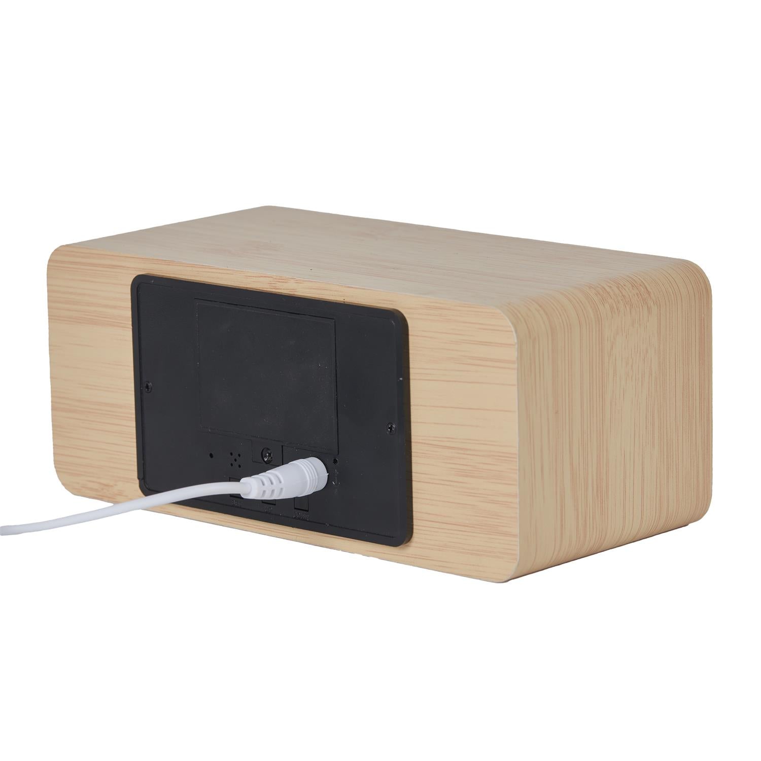 Digitālais modinātājs ar bezvadu (indukcijas) uzlādi – bambusa dizainā