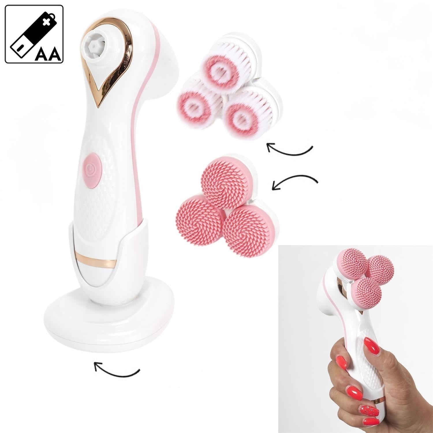 Komplektā iekļauti divu veidu uzgaļi – ar sariem dziļai attīrīšanai un silikona uzgalis jutīgai ādai un maigai masāžai. Ierīcei ir divi darbības ātrumi, kas ļauj pielāgot intensitāti atbilstoši ādas tipam.
