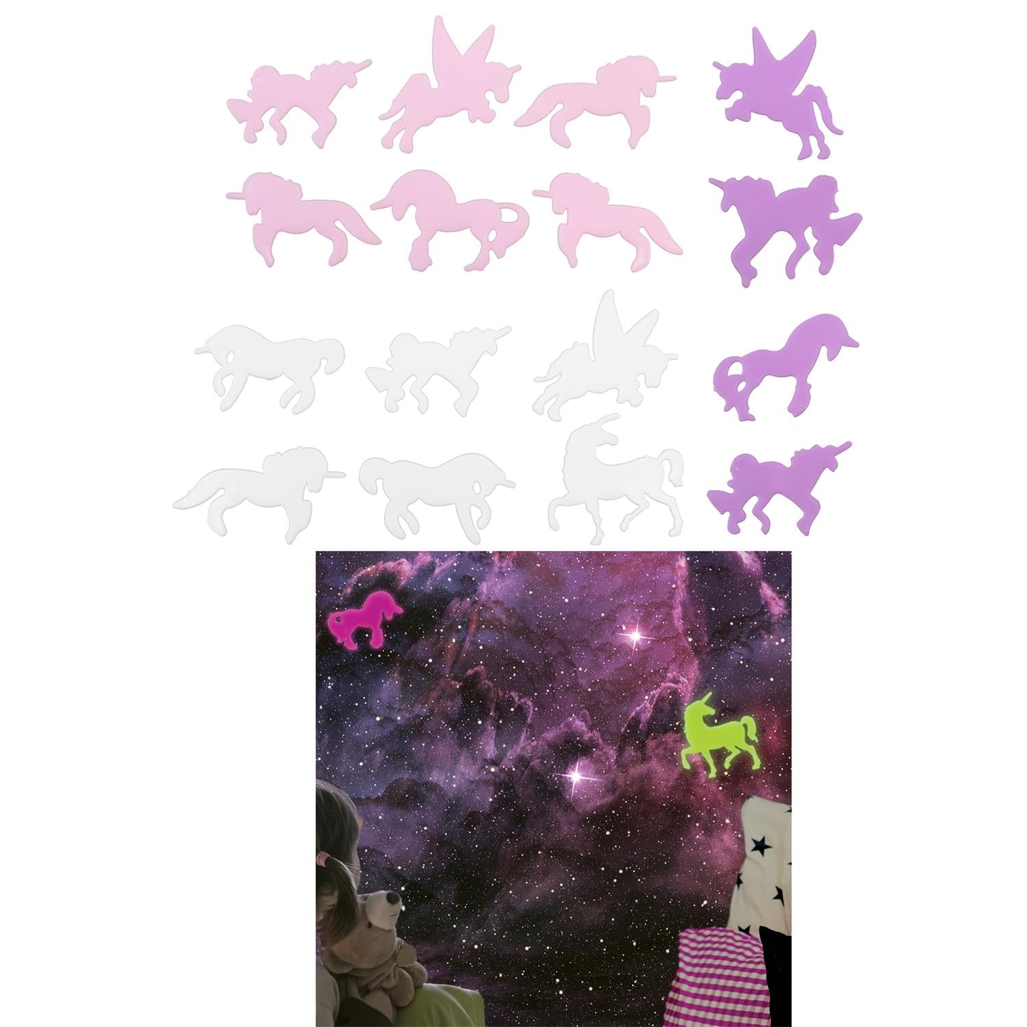 Fosforizējošas sienas uzlīmes “Vienradži / Raķetes” – 16 gab.