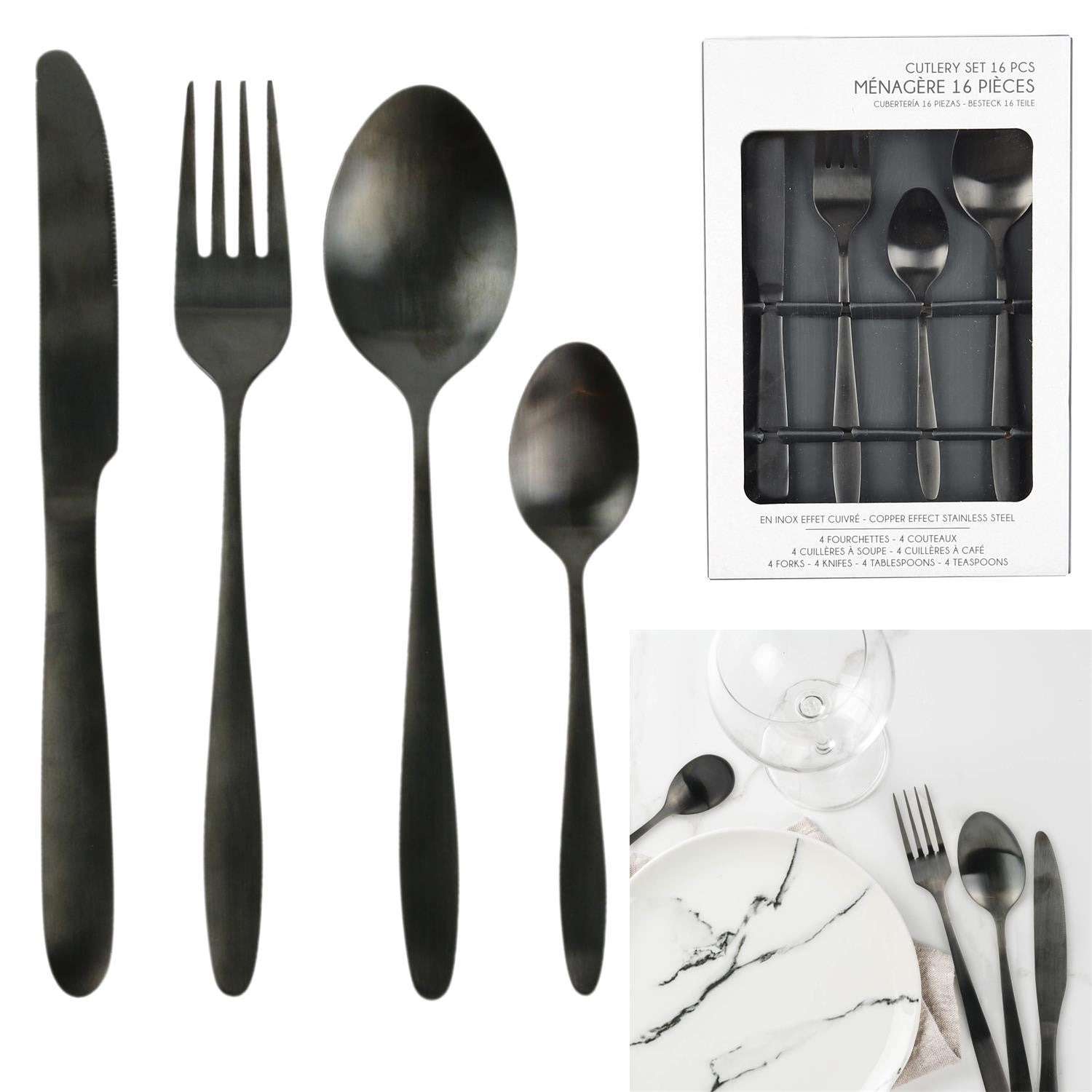 Galda piederumu komplekts – 16 daļas, matēti melns