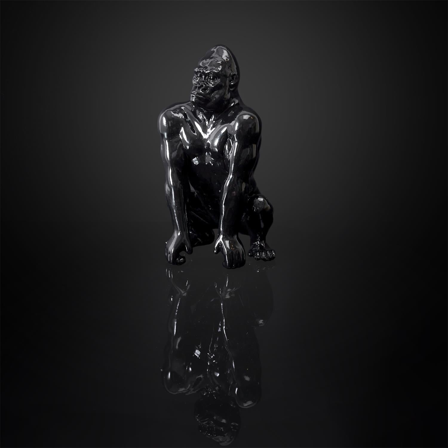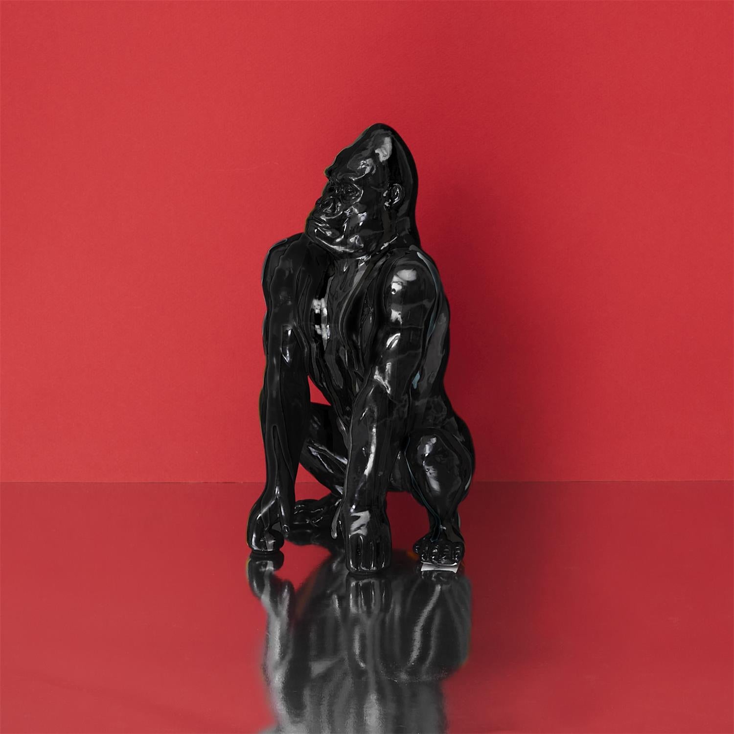 Moderns un vizuāli spēcīgs gorillas dekors melnā, spīdīgā apdarē. Figurālais siluets izceļ muskulatūras detaļas un piešķir šim dekoram īpašu raksturu, padarot to par pamanāmu akcentu jebkurā telpā.