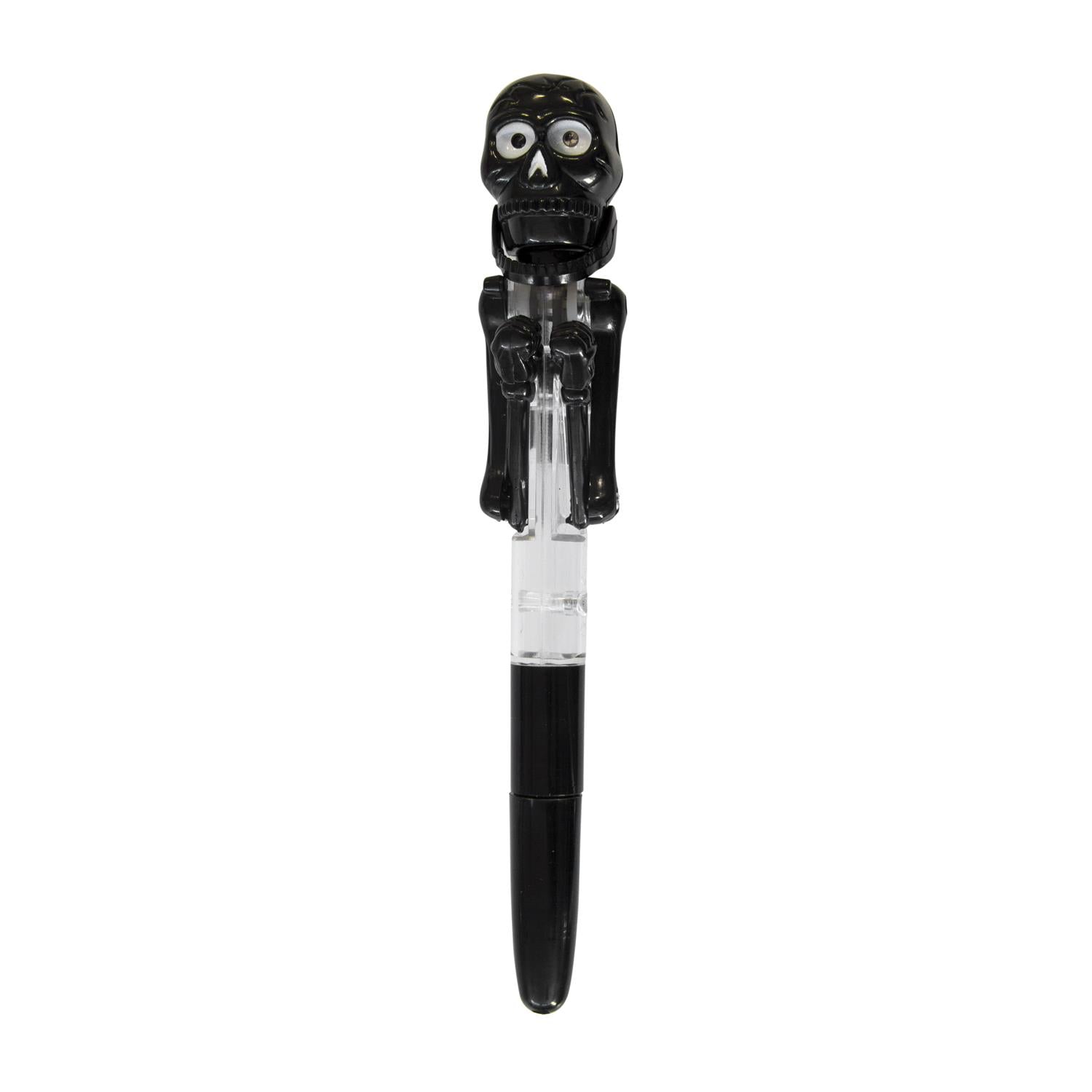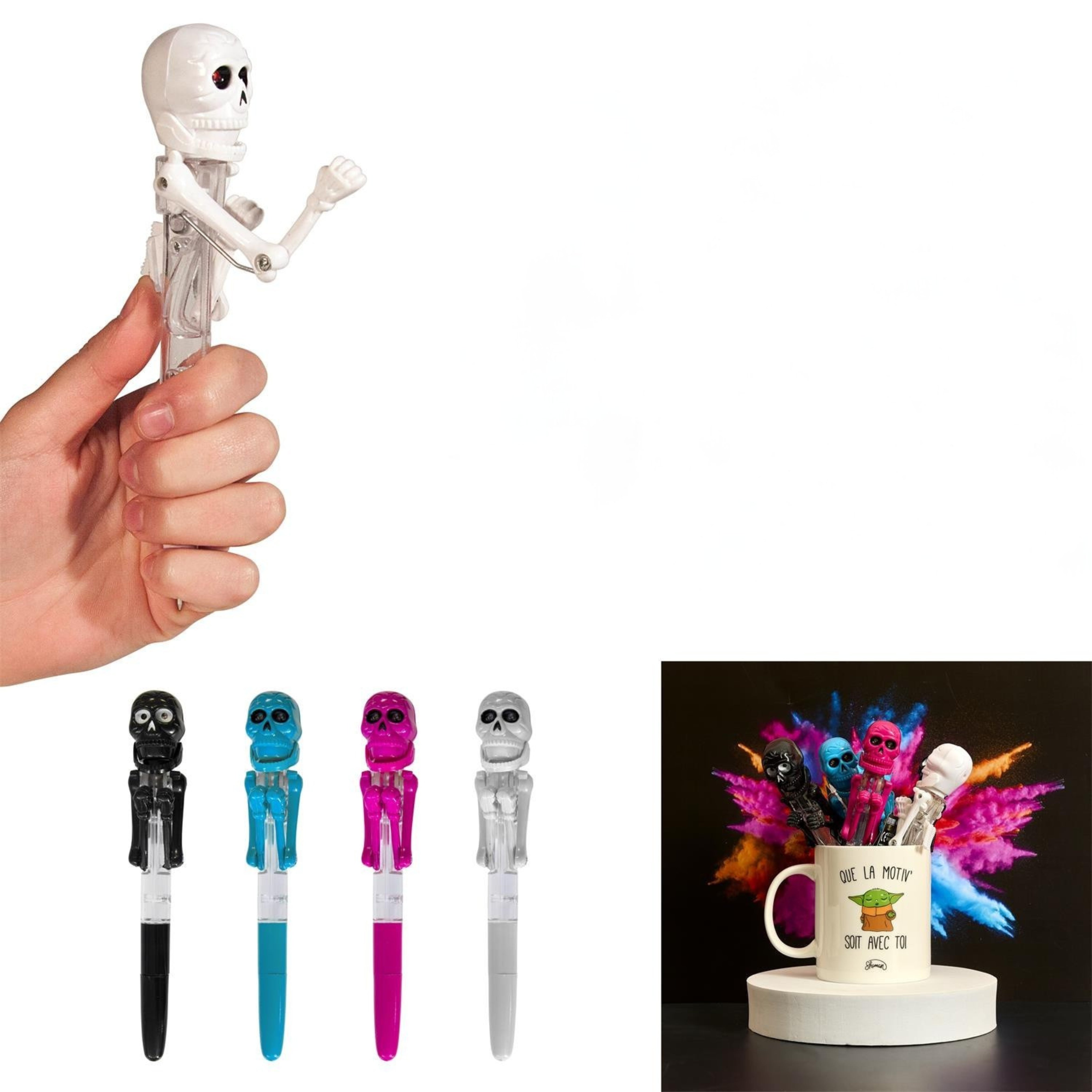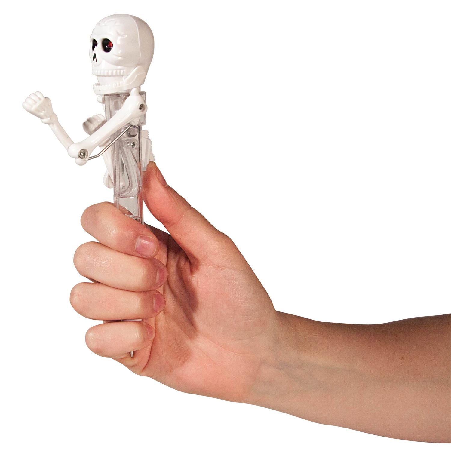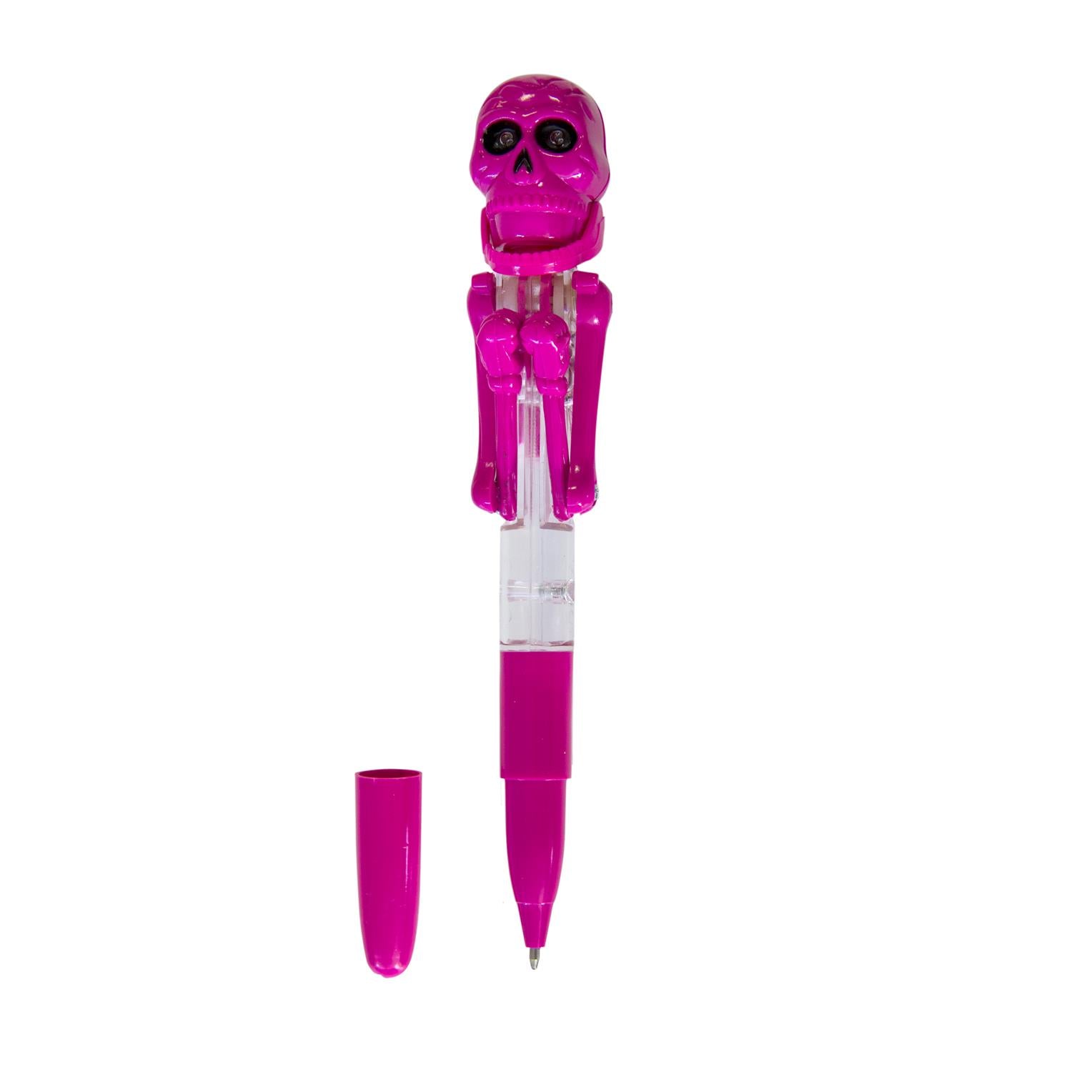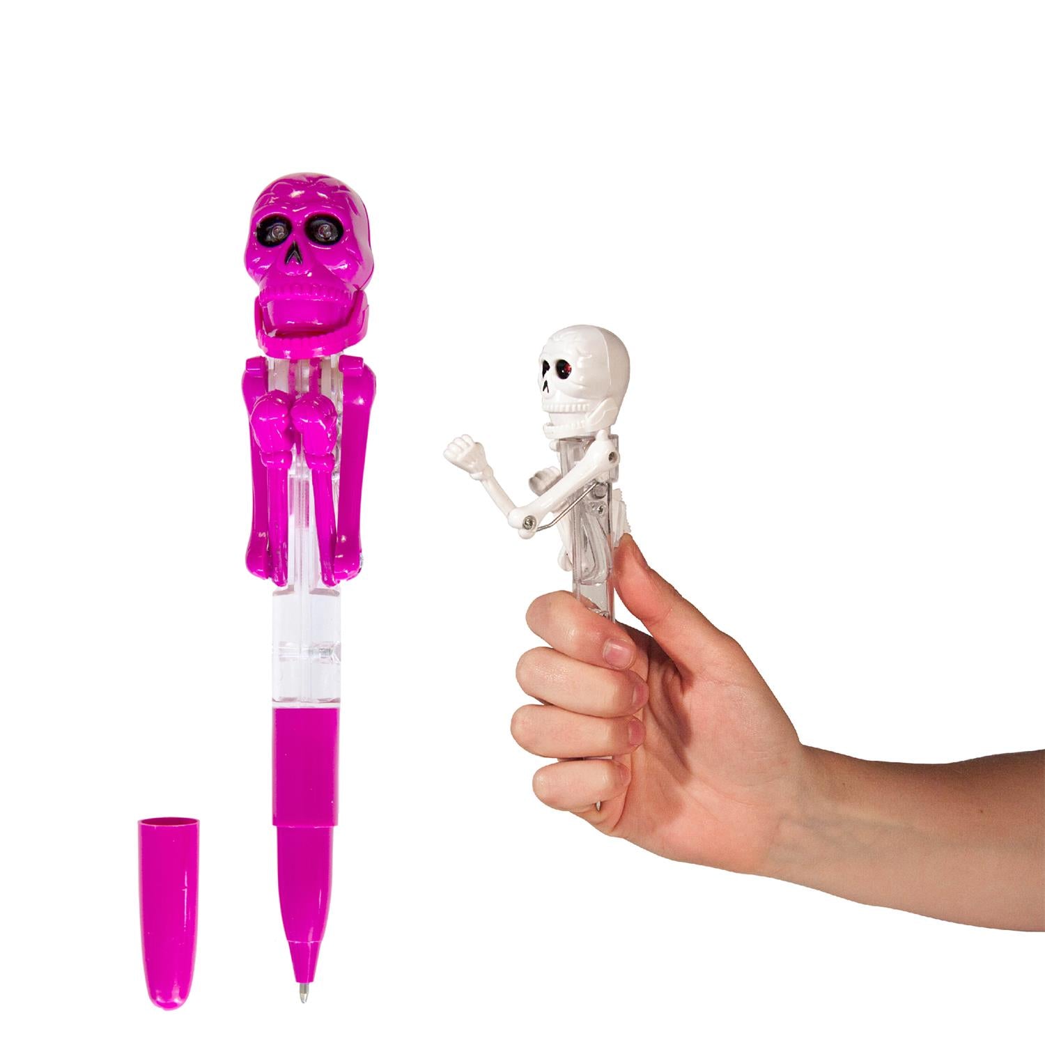 Ienes jautrību ikdienā ar šo interaktīvo pildspalvu ar skeletu, kas kustas kā bokseris! Katru reizi, kad nospied mehānismu, skelets “sit” ar rokām, un viņa acis iedegas – īsts mini šovs Tavā rokā 😄
