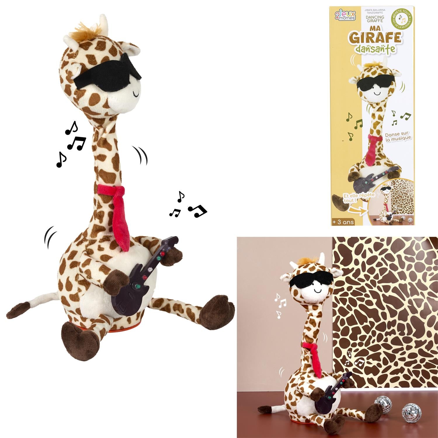 Jautra un enerģiska dejojoša žirafe, kas kustas, šūpojas un atskaņo mūziku,atkārto cilvēka teikto. iepriecinot bērnus ar savu rotaļīgo raksturu. Nospiežot pogu, žirafe sāk dejot mūzikas ritmā, kustina galvu un ķermeni, radot smaidu un smieklus ikvienam skatītājam.