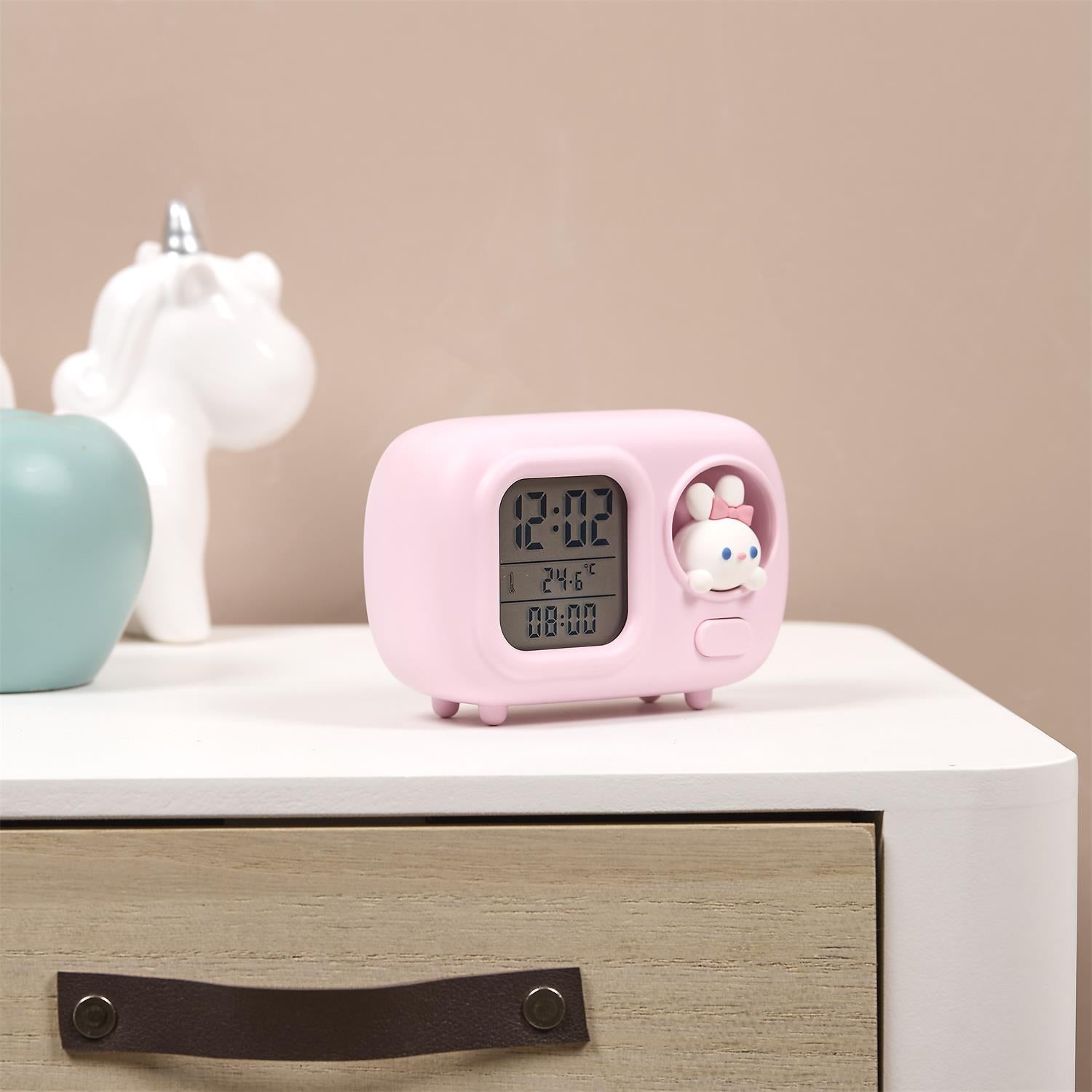 Padari rītus priecīgākus ar šo Kawaii stila digitālo modinātājpulksteni, kas apvieno funkcionalitāti, mīļu dizainu un LED naktslampiņu. Ideāli piemērots bērnu istabai, guļamistabai vai kā sirsnīga dāvana.