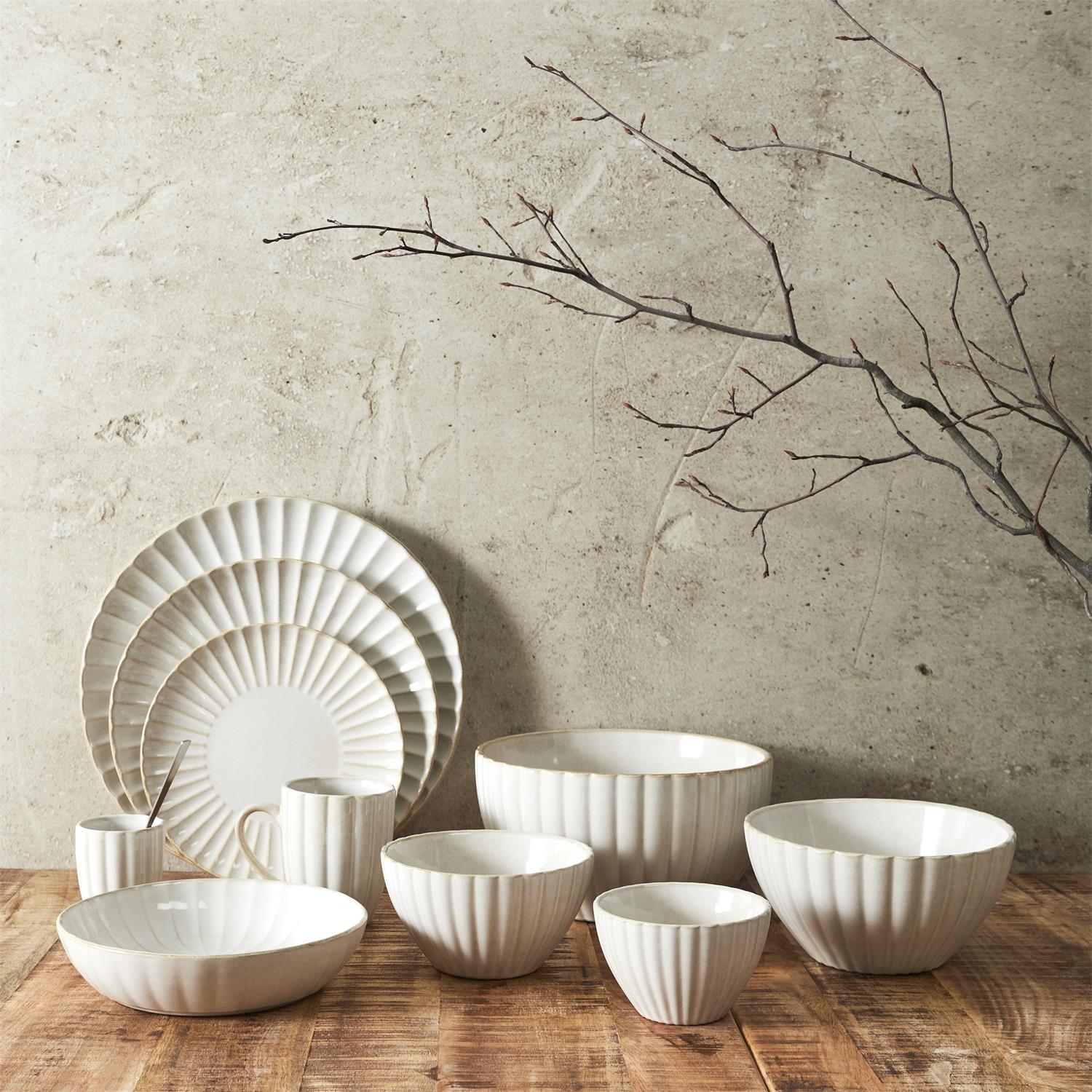 Kompakta un eleganta keramikas bļoda no stoneware, veidota siltā bēšīgā tonī ar smalki rievotu struktūru. Tās harmoniskais dizains un dabiskā krāsa padara bļodu par gaumīgu papildinājumu gan ikdienas galda klājumam, gan modernai servēšanai.