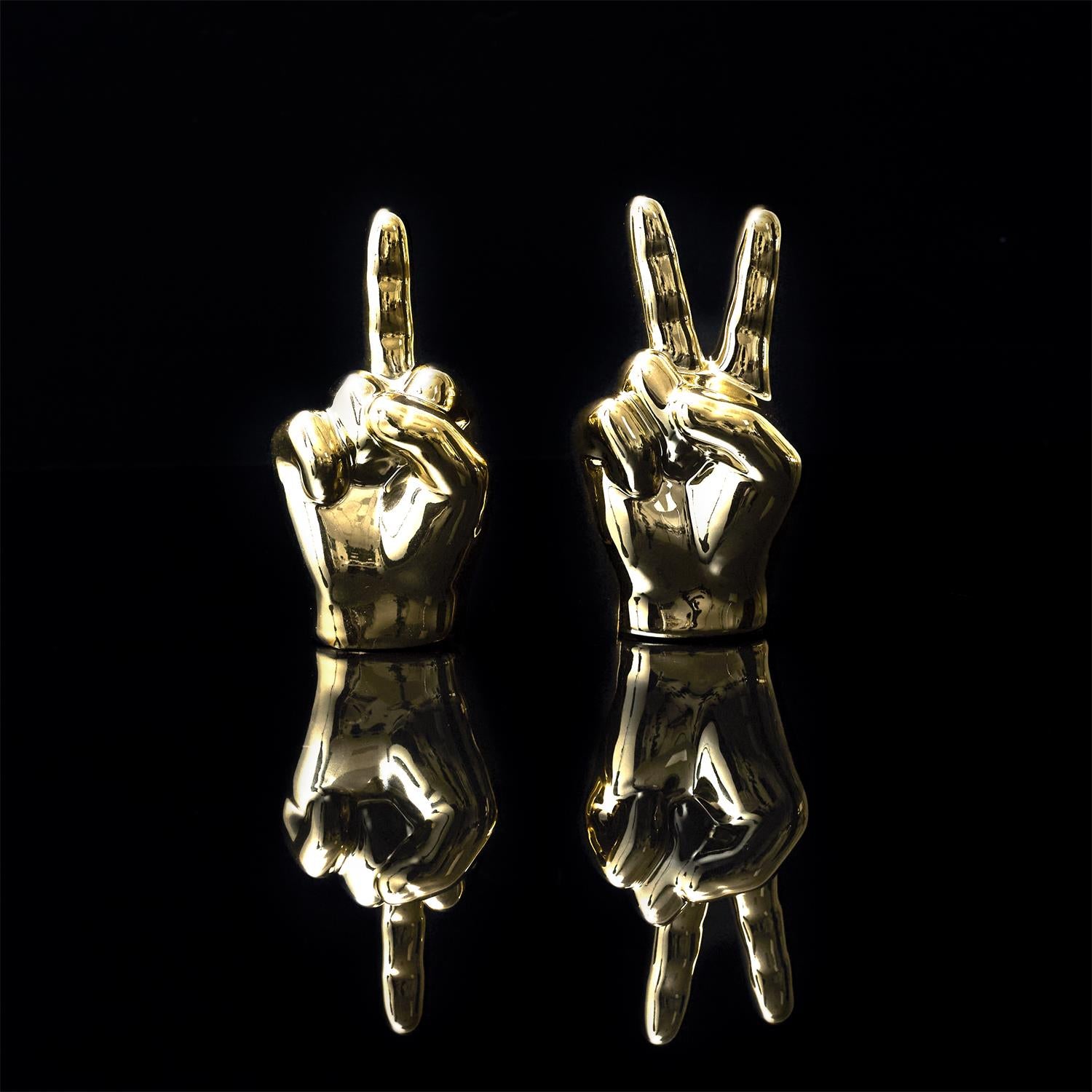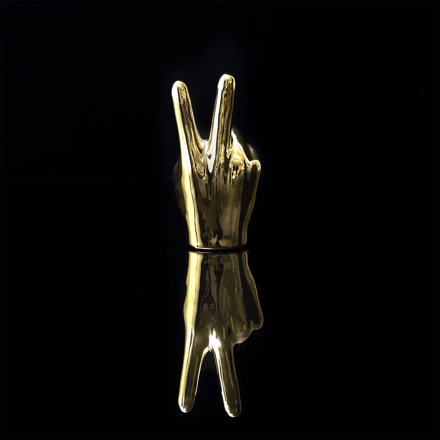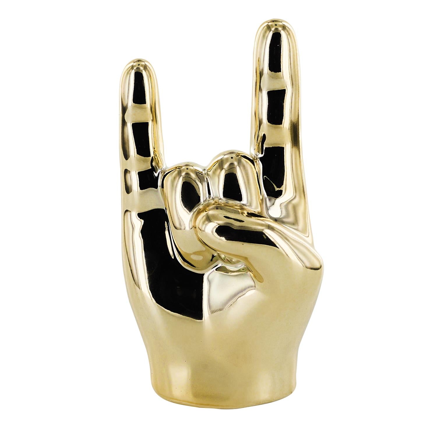 Modernā un izteiksmīgā keramikas figūra zelta tonī ar rokas žestu piešķir interjeram drosmīgu, stilīgu akcentu. Spīdīgā pārklājuma skulpturālā forma padara šo dekoru par pamanāmu dizaina elementu, kas lieliski iederas mūsdienīgā, industriālā vai luksusa interjerā.