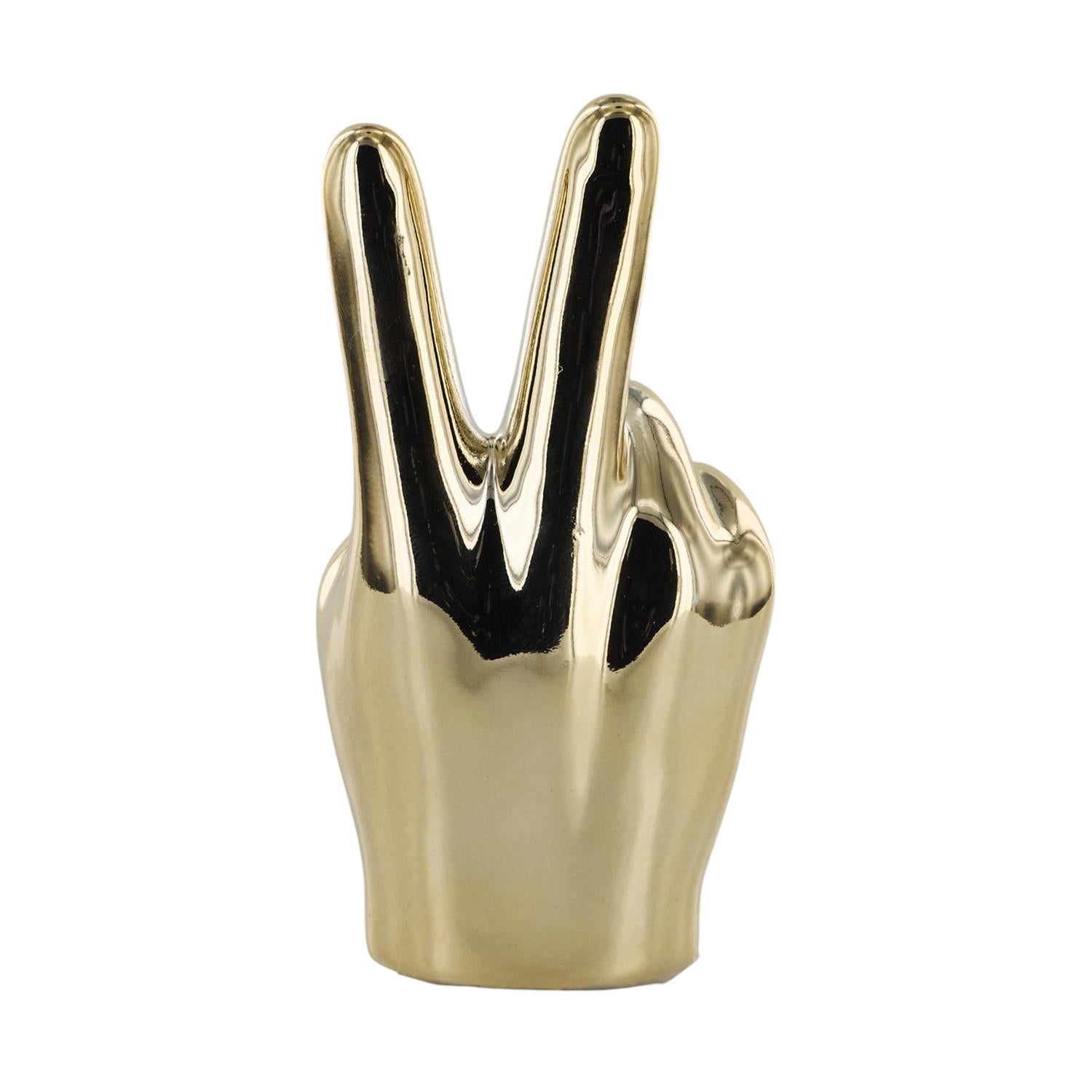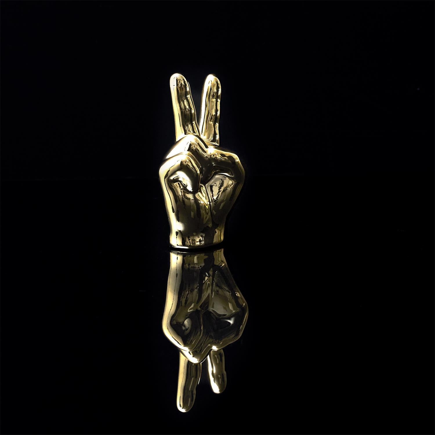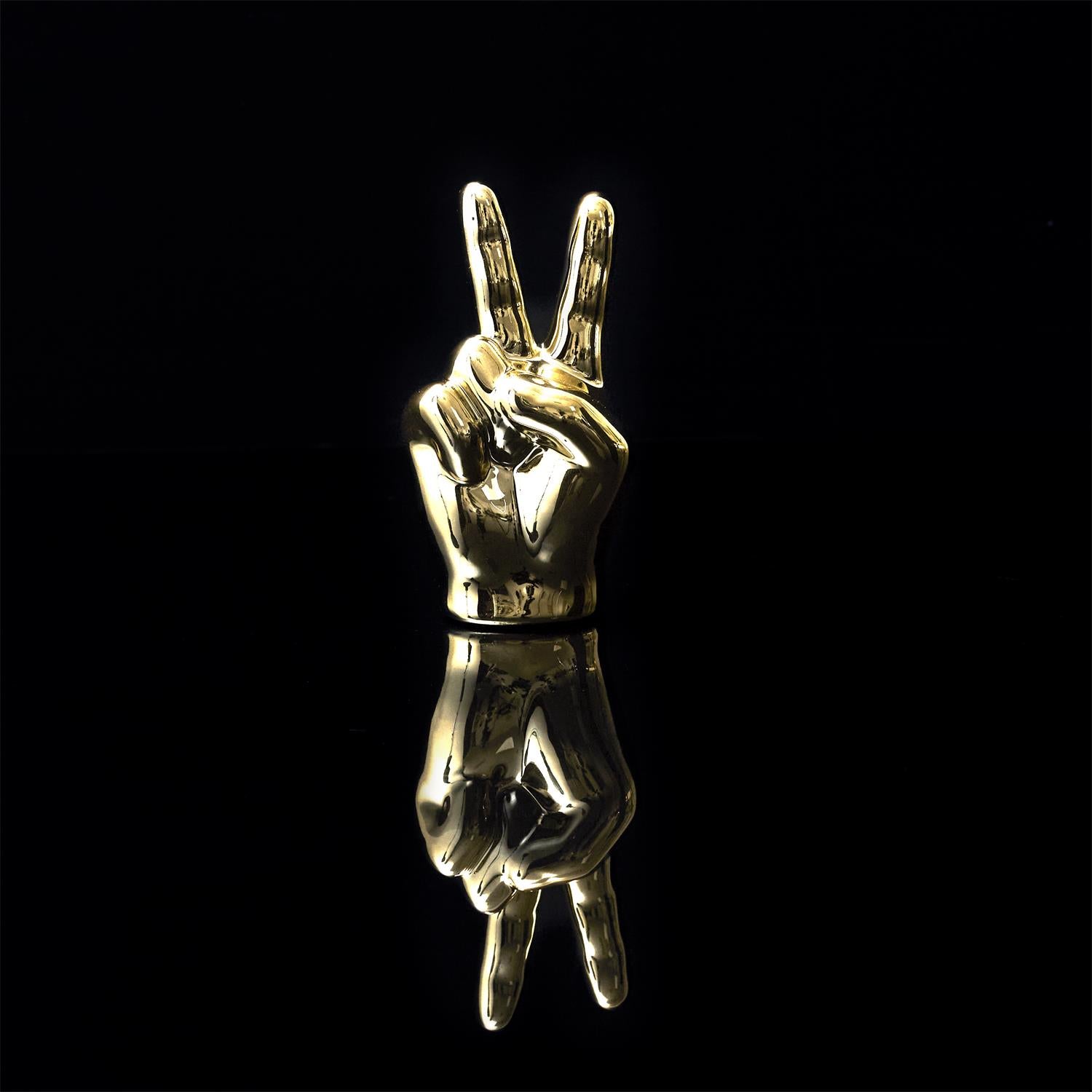 Modernā un izteiksmīgā keramikas figūra zelta tonī ar rokas žestu piešķir interjeram drosmīgu, stilīgu akcentu. Spīdīgā pārklājuma skulpturālā forma padara šo dekoru par pamanāmu dizaina elementu, kas lieliski iederas mūsdienīgā, industriālā vai luksusa interjerā.