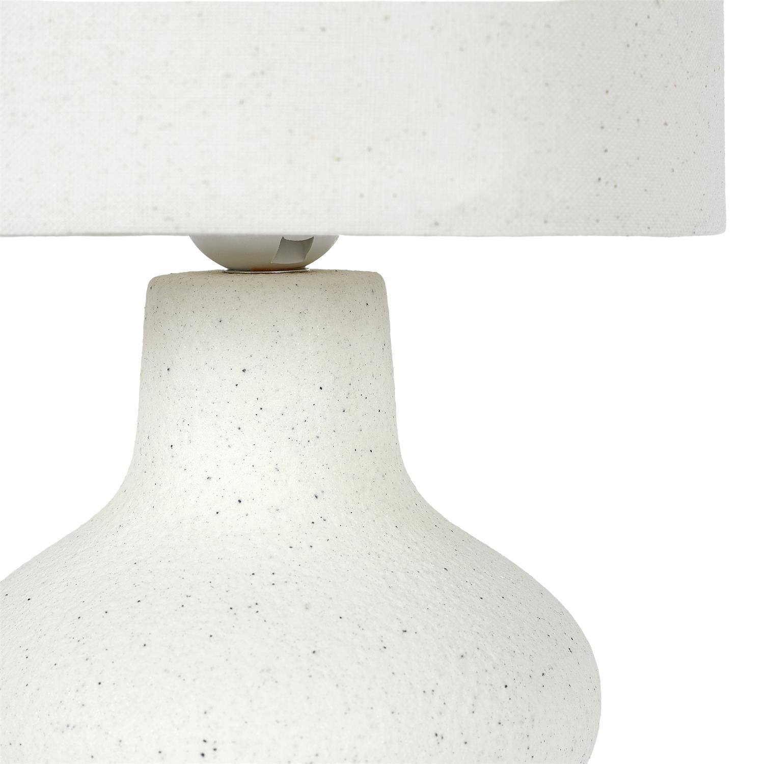 Eleganta krēmkrāsas keramikas galda lampa ar lina abažūru piešķir telpai mājīgumu un siltu gaismu. Ideāli piemērota viesistabai, guļamistabai vai lasīšanas stūrītim.