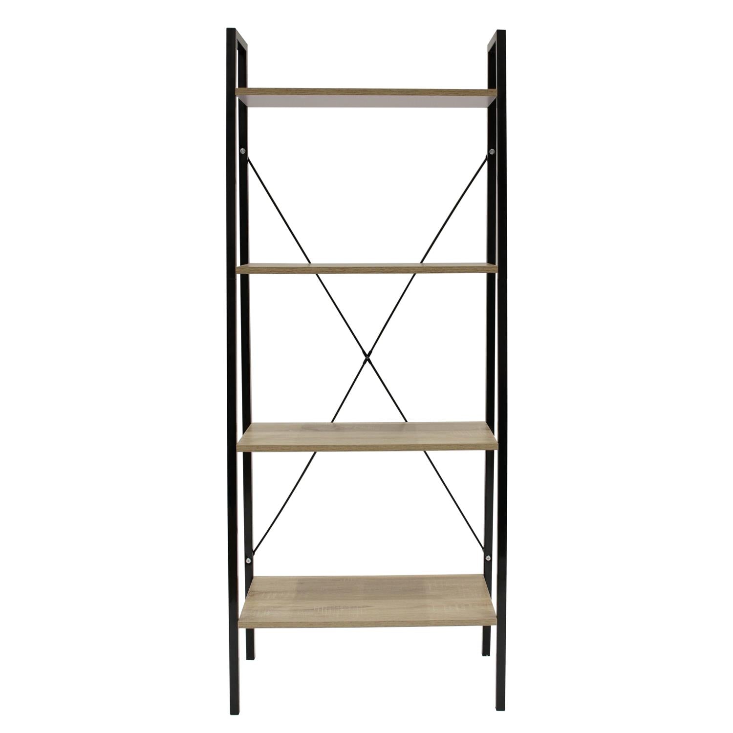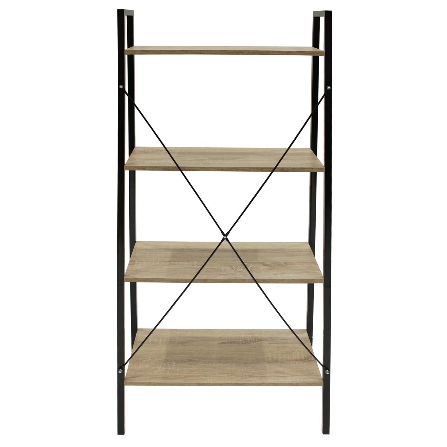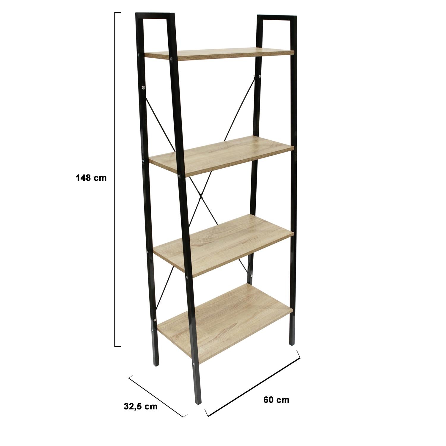 Ienes savā interjerā kārtību un stilu ar šo eleganto 5 līmeņu plauktu, kas apvieno melna metāla rāmi ar dabīga koka imitācijas plauktiem. Tas ir izturīgs, stabils un lieliski piemērots gan dekoru izvietošanai, gan praktiskai mantu organizēšanai.