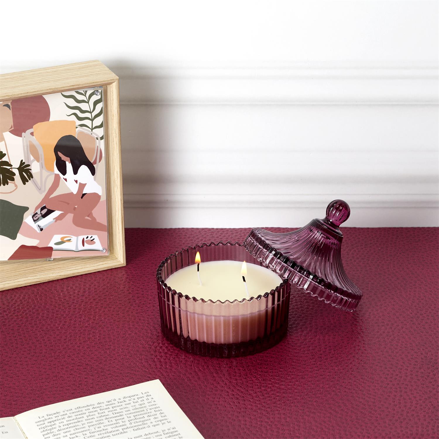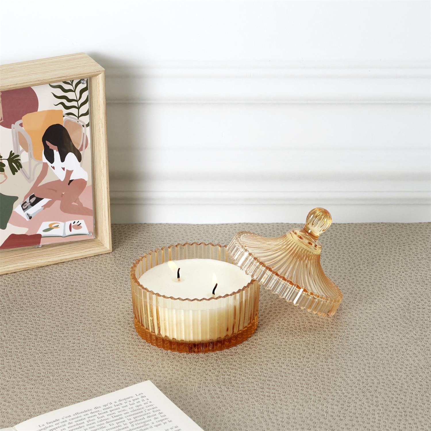 Ienes savās mājās eleganci un smalku luksusa noskaņu ar šo kristāla stila sveci ar dekoratīvu vāciņu. Svece ir ievietota biezā, caurspīdīgā, vintage iedvesmotā stikla traukā ar skaistām gropītēm, kas rada gaismas spēli un piešķir svecei izcilu estētiku.