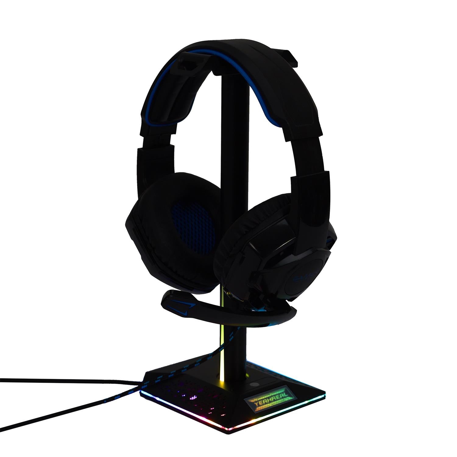 Pacel savu gaming, darba vai studiju galda stilu jaunā līmenī ar šo moderni apgaismoto LED austiņu statīvu. Praktisks, stabils un ar funkcionālām USB pieslēgvietām – tas ir lielisks risinājums kārtīgai un estētiskai darba vietai.