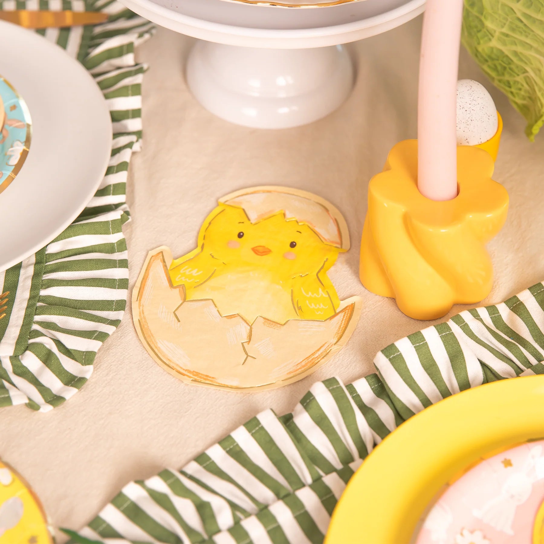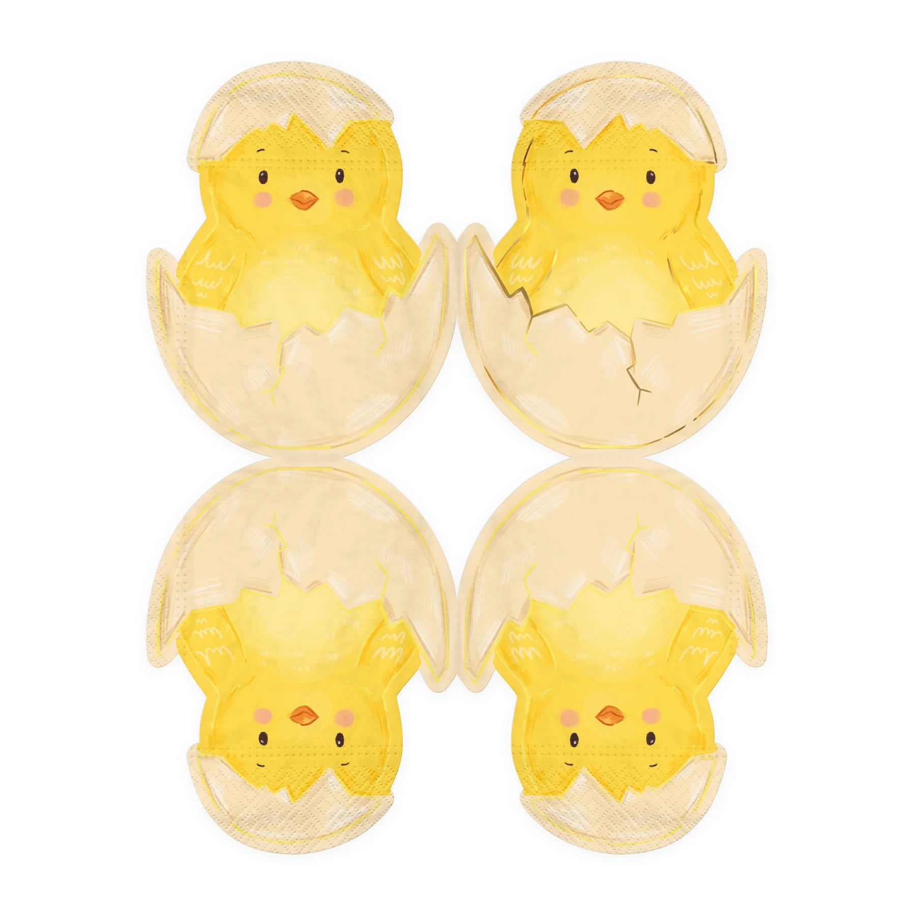 Mīļas un pavasarīgas Lieldienu salvetes ar cālīša motīvu olu čaumalā. Oriģinālā forma padara galda klājumu īpašu un rotaļīgu – ideāli piemērotas Lieldienu svinībām, bērnu ballītēm un sezonas dekorēšanai.