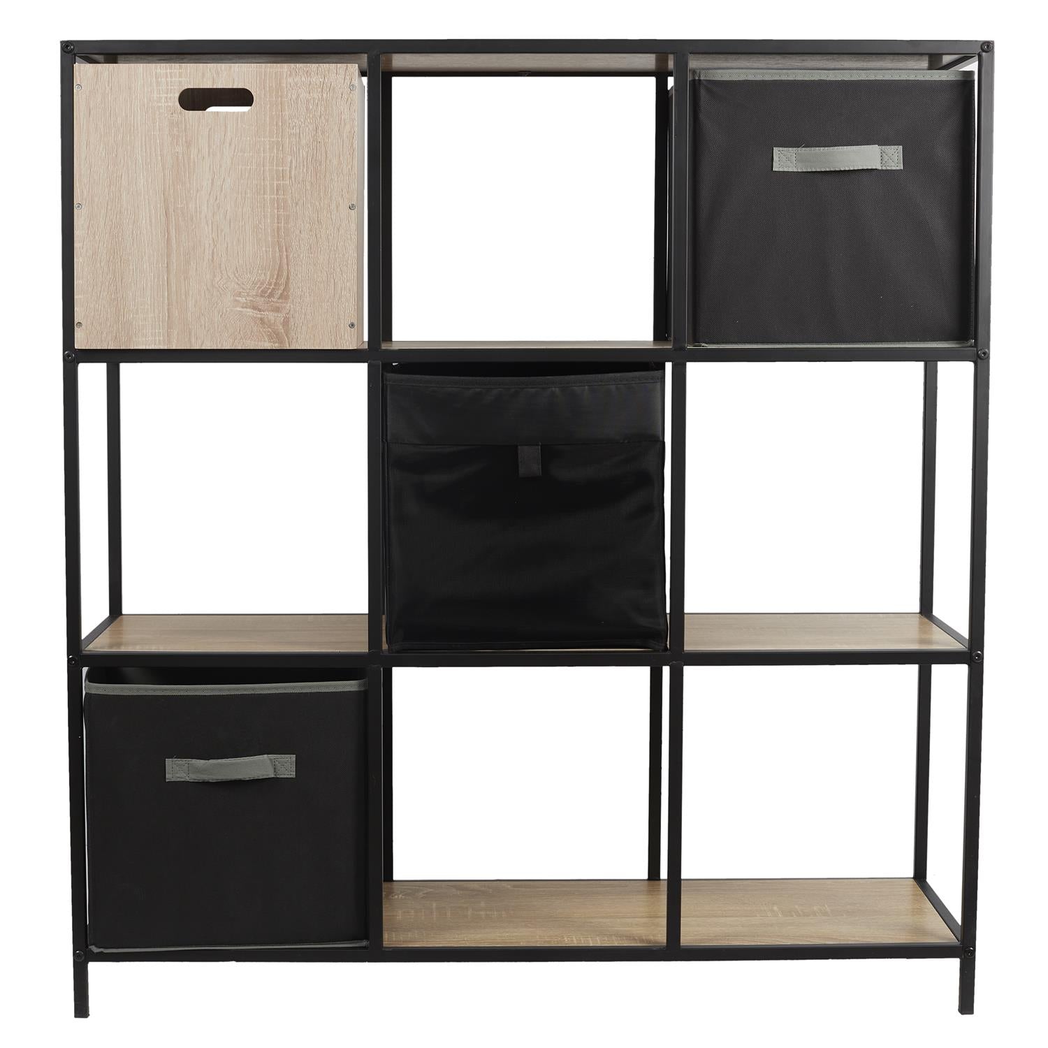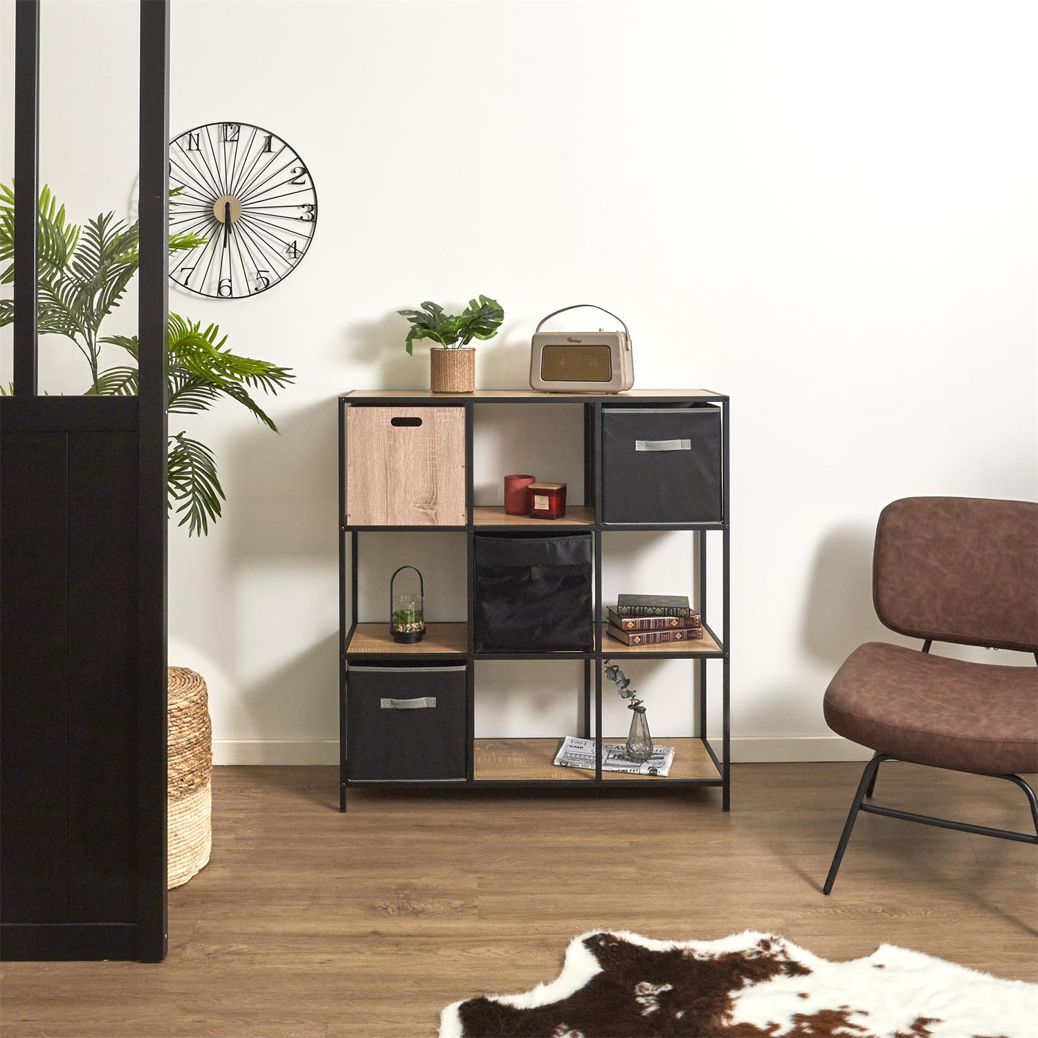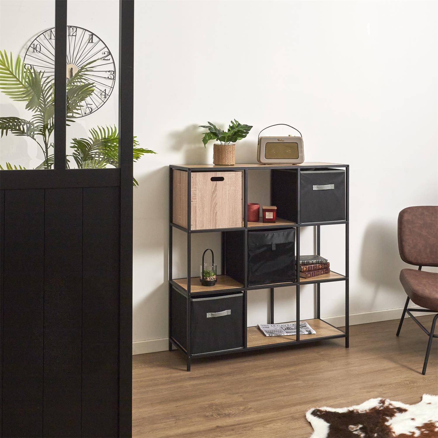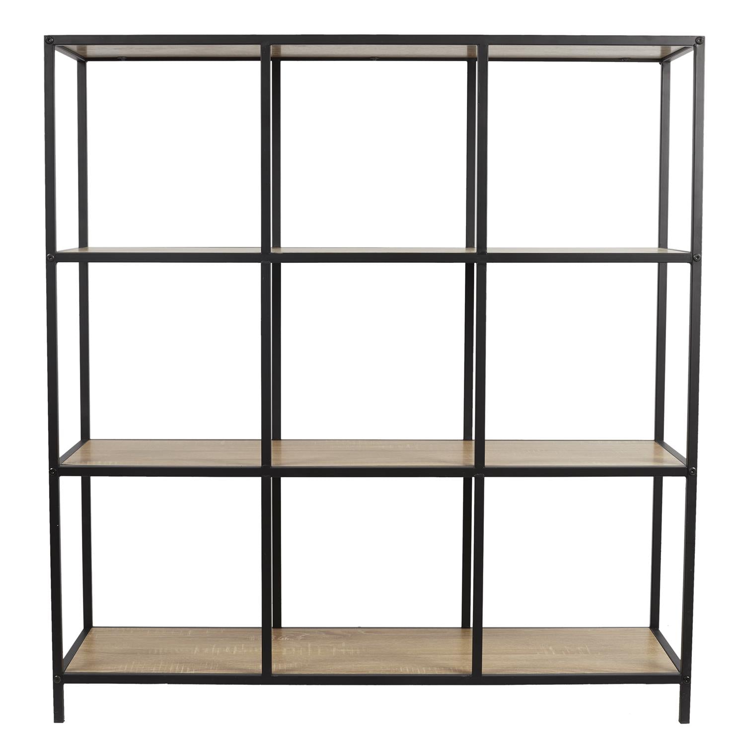 Stilīgs un funkcionāls plaukts ar melna metāla rāmi un koka toņa plauktiem, kas lieliski papildina industriālu, loft vai modernu interjeru. Atvērtā konstrukcija piešķir telpai vieglumu, vienlaikus nodrošinot praktisku vietu grāmatām, dekoriem, augiem vai aksesuāriem.