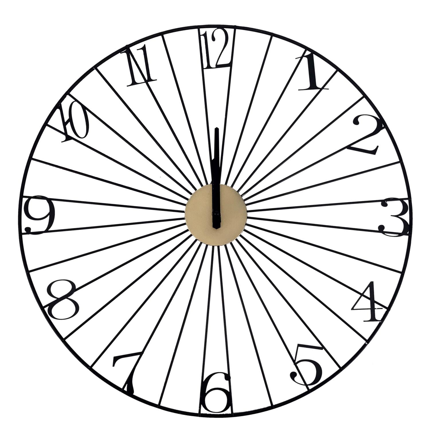Melns metāla rāmis un smalki cipari piešķir pulkstenim izteiktu raksturu, savukārt centrālais zelta tonis piešķir nelielu akcentu un siltumu. Pulkstenis ir viegli piestiprināms un lieliski izceļas gan viesistabā, gan hallē, guļamistabā vai biroja telpā.