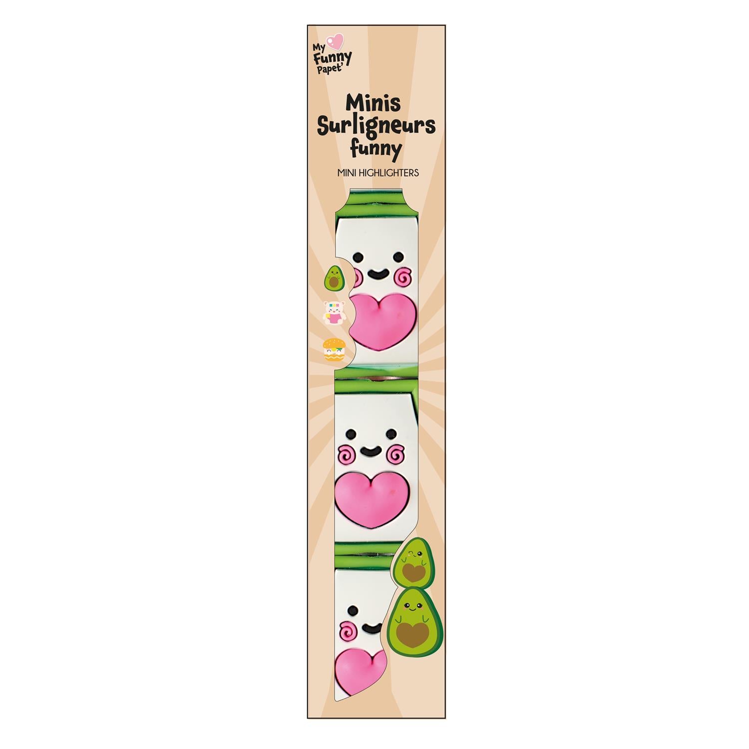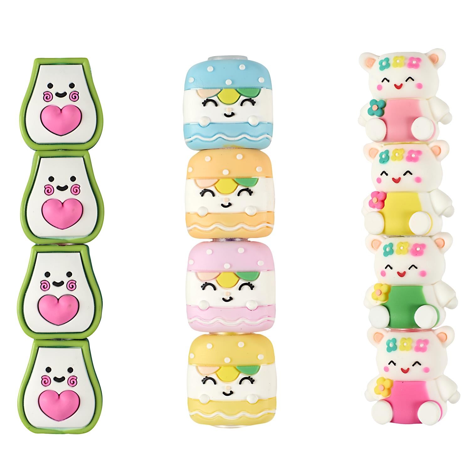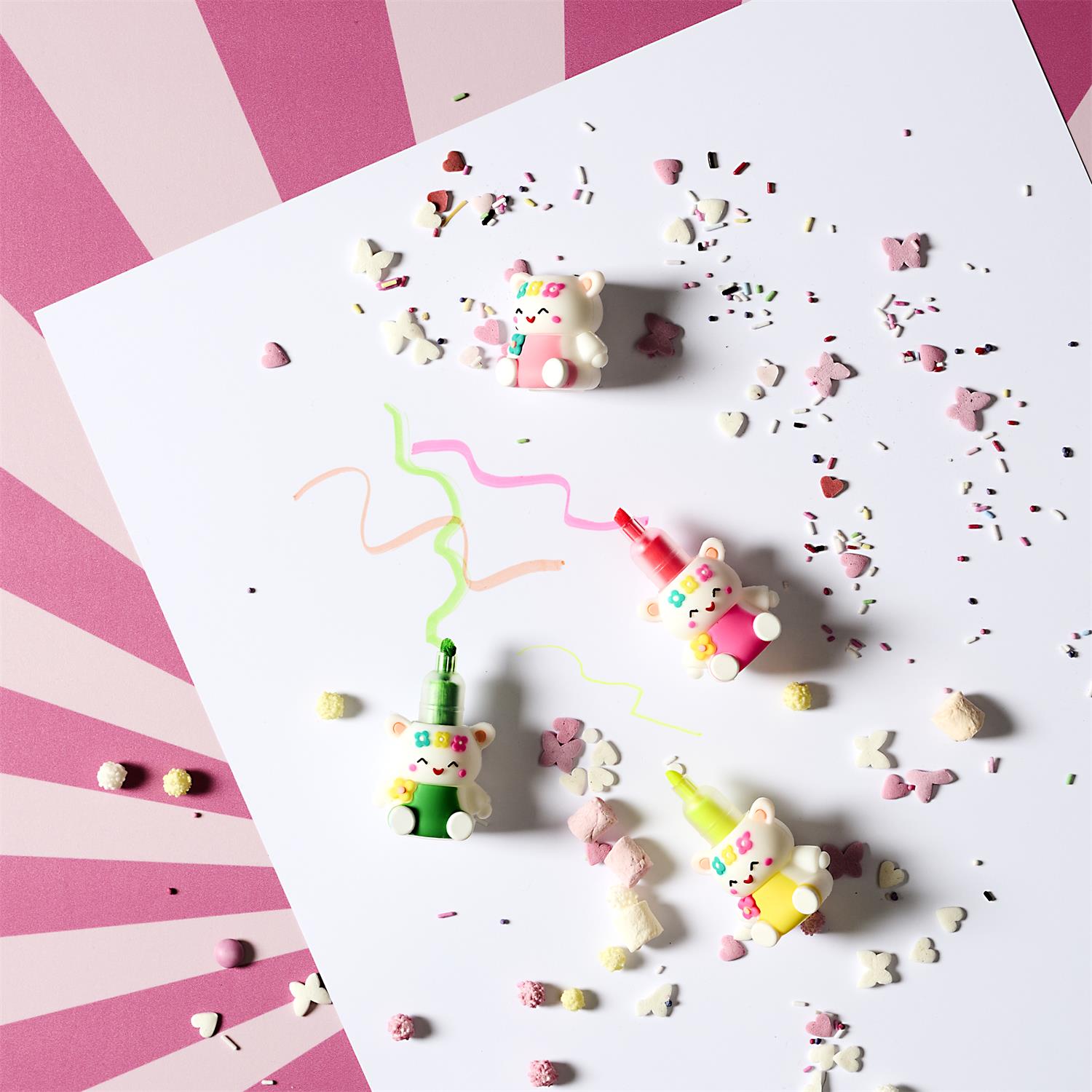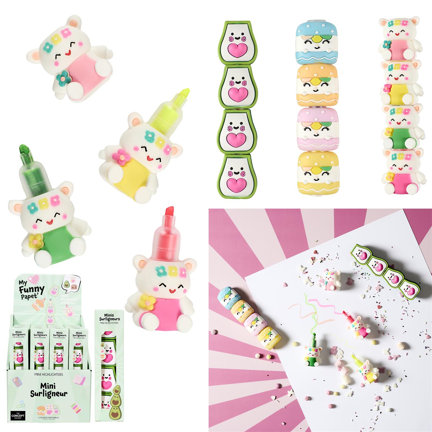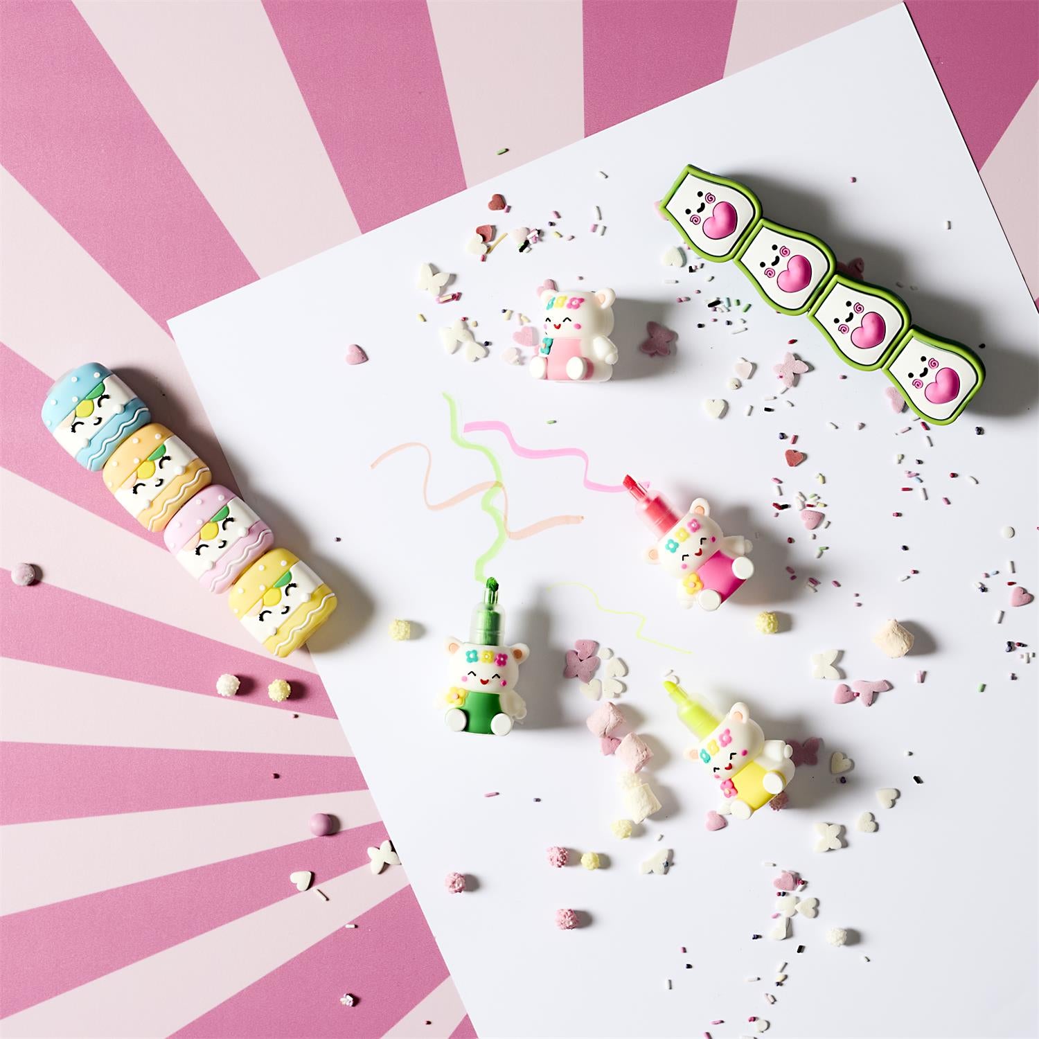 Īpaši mīlīgi Kawaii kolekcijas mini tekstmarķieri, kas apvieno funkcionalitāti ar rotaļīgu dizainu. Katrs marķieris veidots kā mazs kawaii tēls – lācītis, sirsniņa, salds našķis u.c. – pasteļtoņos, kas padara mācības un pierakstus daudz priecīgākus.