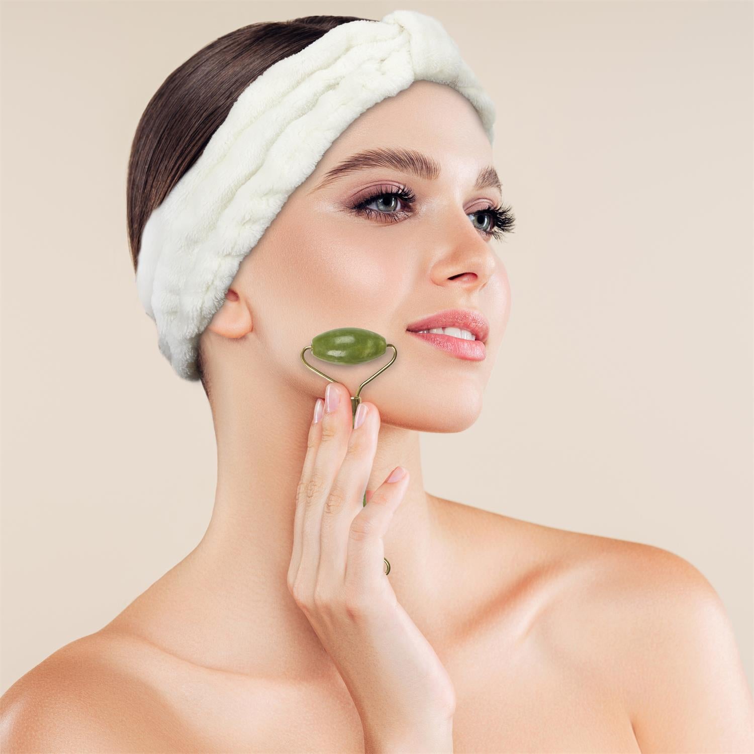 Nefrīta rullītis palīdz sašaurināt poras, uzlabot ādas elastību, izlīdzināt sīkās krunciņas un mazināt tumšos lokus un pietūkumu zem acīm. Galvas saite notur matus prom no sejas, padarot sejas kopšanu ērtu un patīkamu.