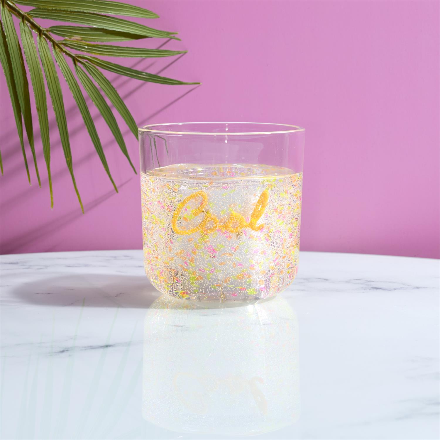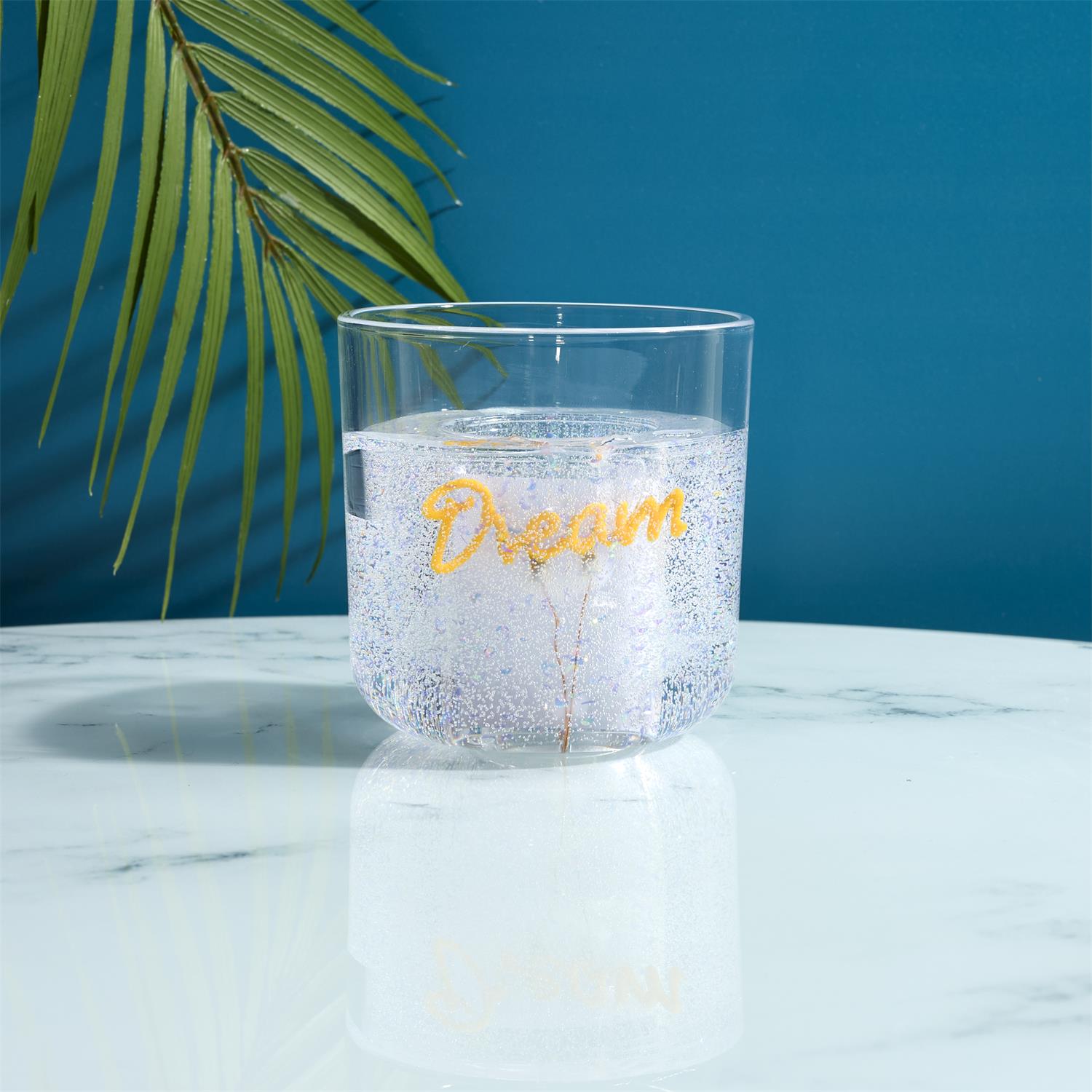 • Dekoratīvs stikla trauks ar vizuāliem efektiem (spīdumi, krāsaini akcenti)