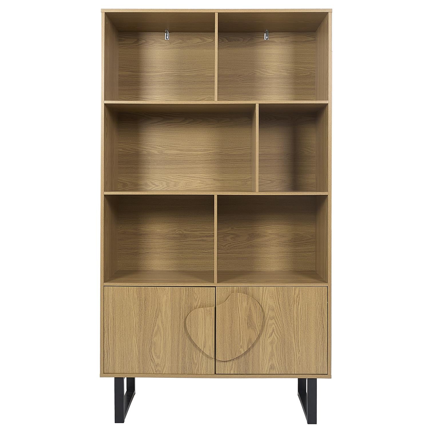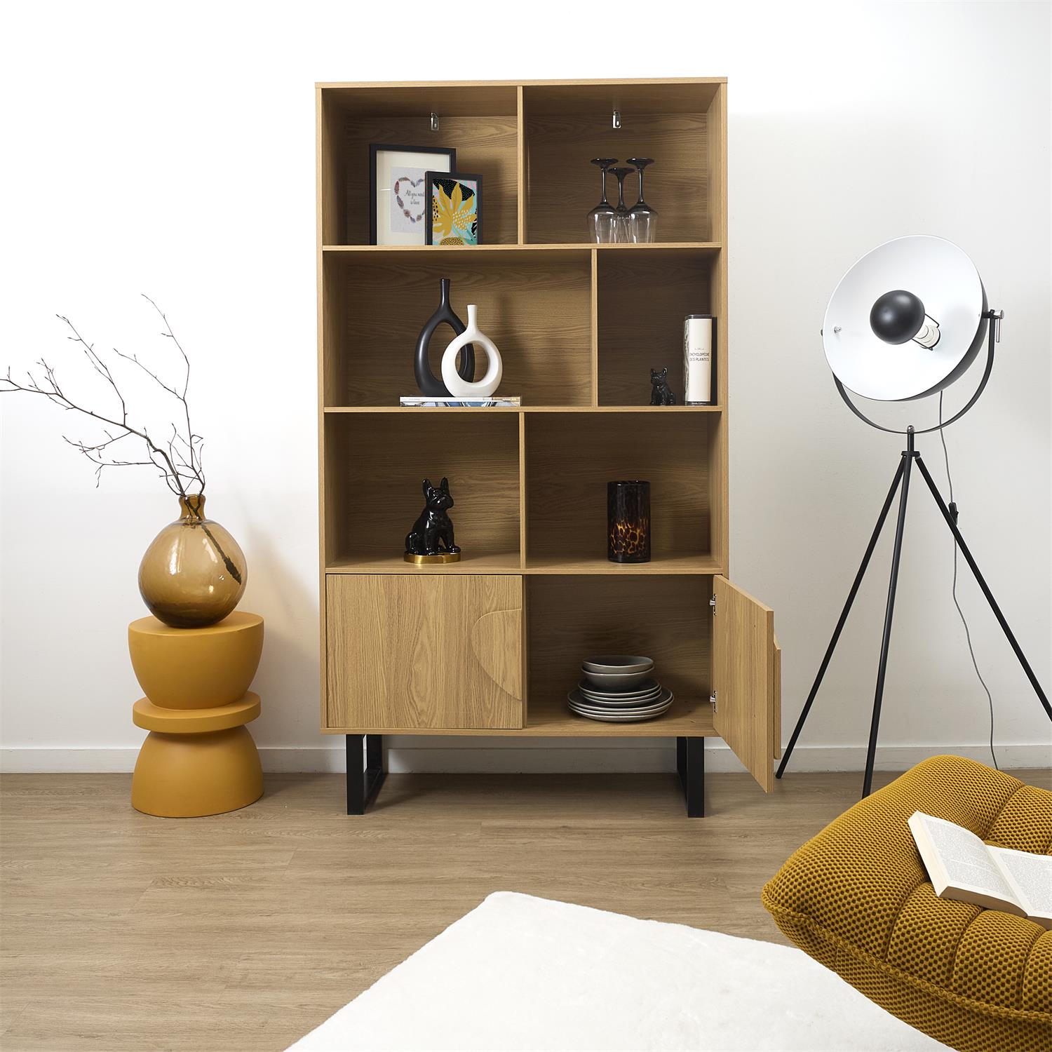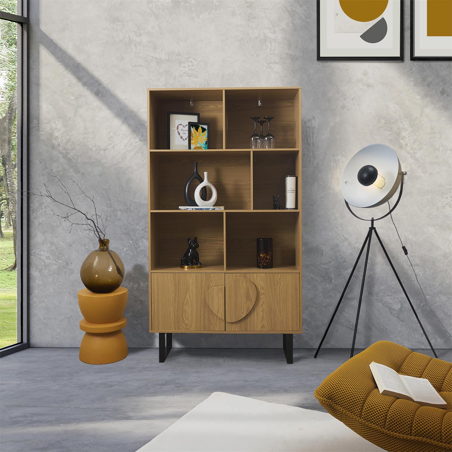 Stilīgs un funkcionāls atvērta tipa plaukts ar slēgtu uzglabāšanas zonu, kas apvieno dizainu un praktiskumu. Plaukta augšējā daļā izvietoti atvērti nodalījumi, ideāli piemēroti dekoru, grāmatu, trauku vai dizaina priekšmetu izvietošanai, savukārt apakšējā daļā – slēgtas durvis ar reljefa dizainu, kas nodrošina kārtīgu un vizuāli tīru telpu.