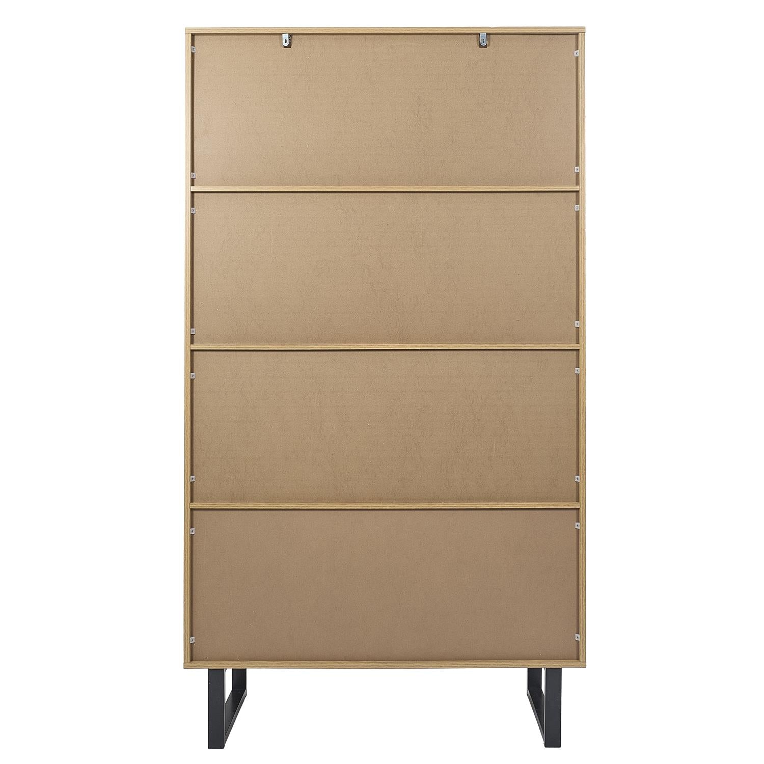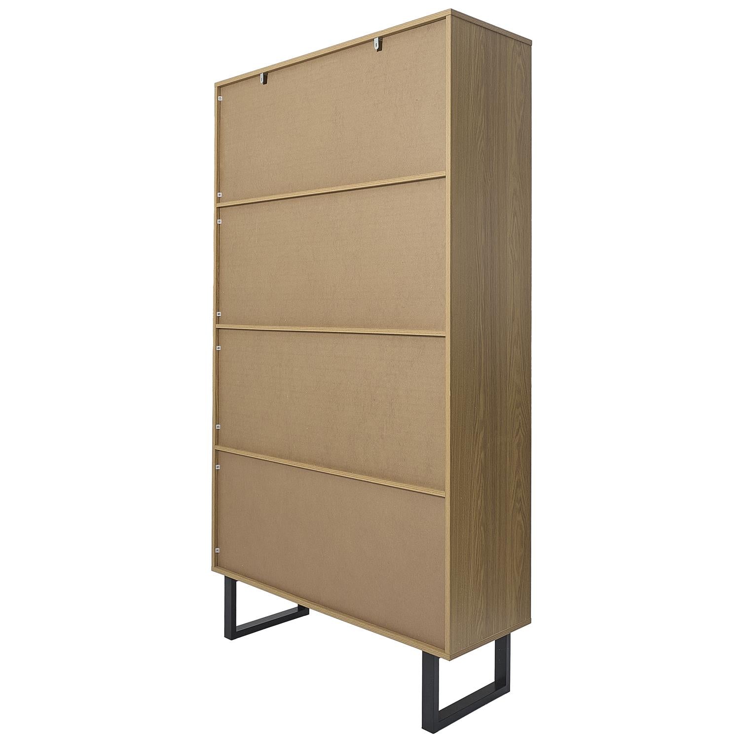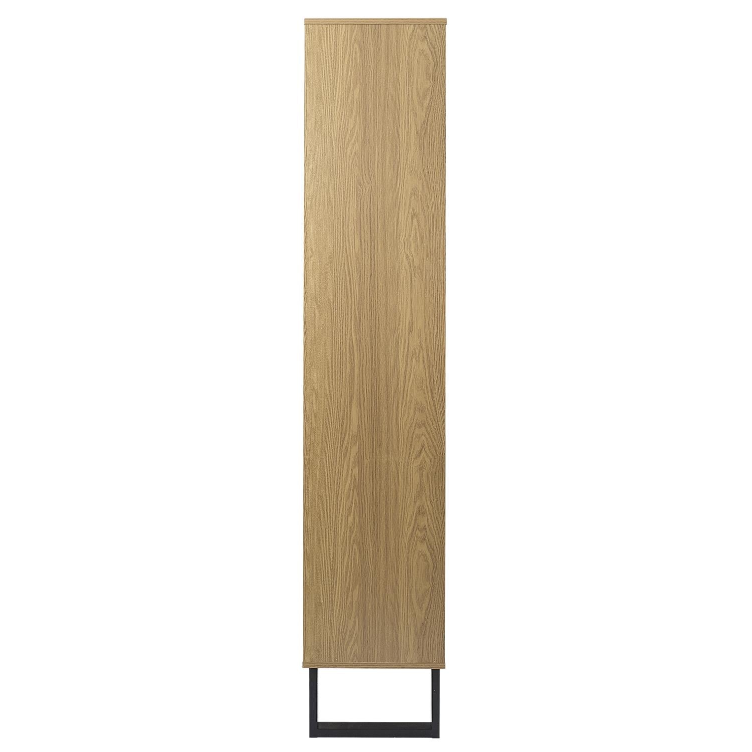 Dabīgais ozolkoka tonis piešķir interjeram siltumu, bet melnas metāla kājas rada modernu kontrastu un stabilu konstrukciju. Organiskās formas reljefs durvju fasādē piešķir mēbelei izsmalcinātu, dizainā balstītu akcentu.