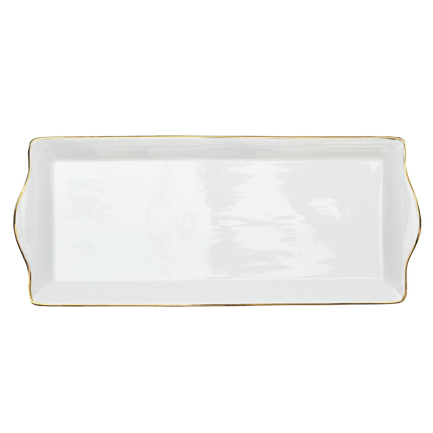 Šī izsmalcinātā porcelāna servēšanas paplāte apvieno klasisku dizainu ar mūsdienīgu eleganci. Tīri baltais porcelāns kopā ar zeltīto maliņu piešķir galdam greznumu un izsmalcinātību, padarot to par lielisku akcentu gan ikdienas maltītēs, gan īpašos svētkos.