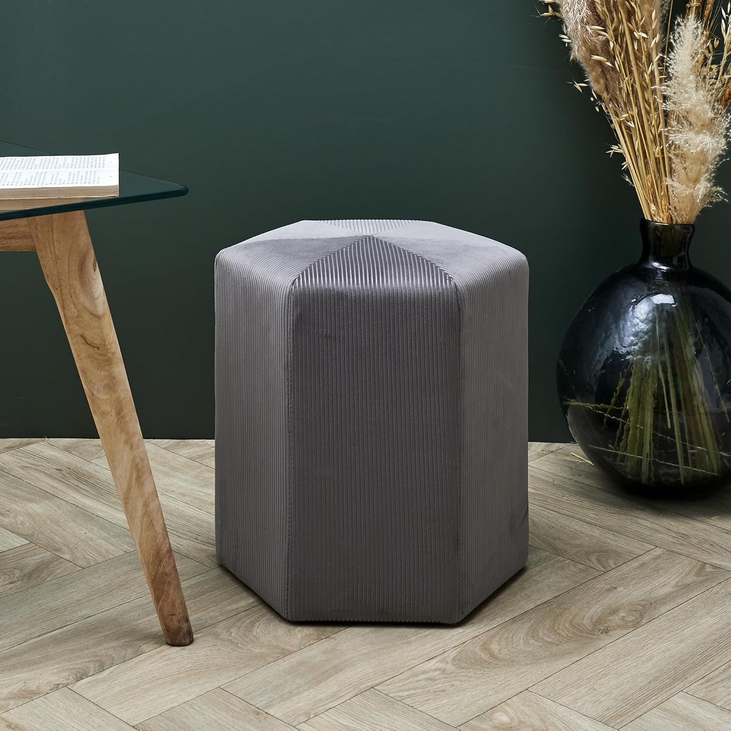 Pufa audums ir izgatavots no izturīga poliestera, kas ir viegli kopjams, noturīgs pret nodilumu un saglabā savu formu pat ikdienas lietošanā. Mīkstā virsma nodrošina ērtu sēdēšanu, bet sešstūra forma piešķir modernu un gaumīgu akcentu jebkurai telpai.
