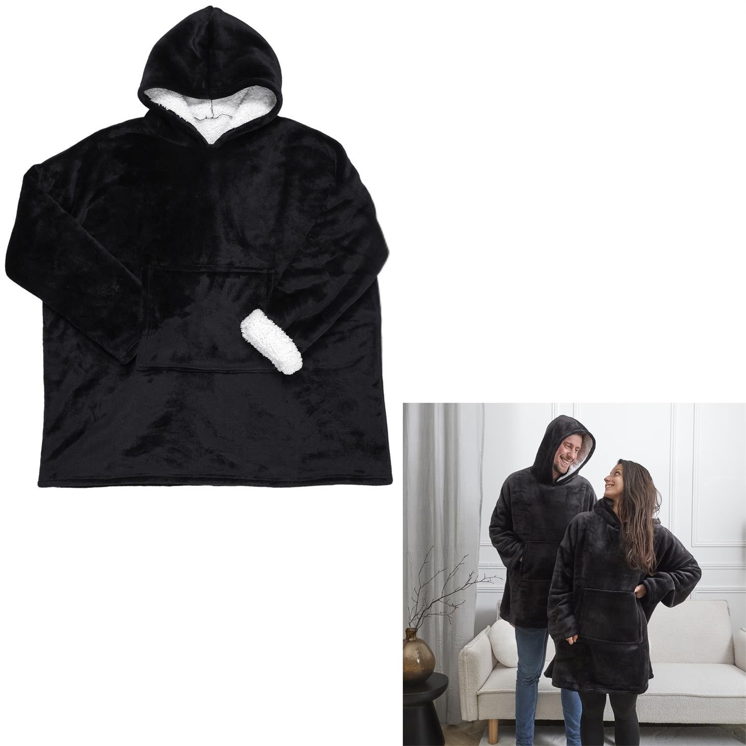 Siltā pleda jaka ar kapuci – Black Ultra Soft Comfort