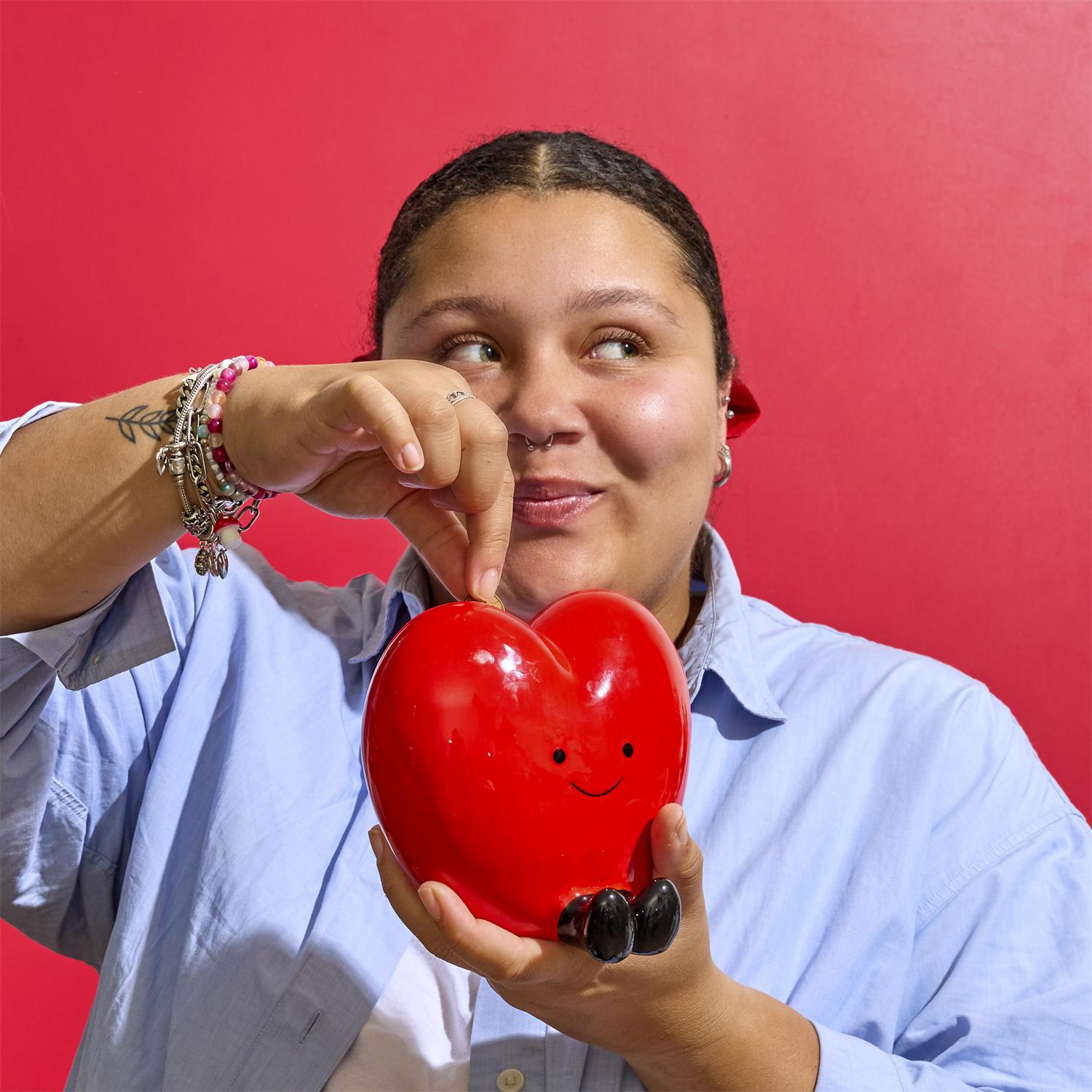 Ar savu glancēto apdari un smaidošo dizainu krājkase kļūs par lielisku dāvanu Valentīndienā, dzimšanas dienā, jubilejā vai kā mīļu pārsteigumu kādam īpašam cilvēkam.